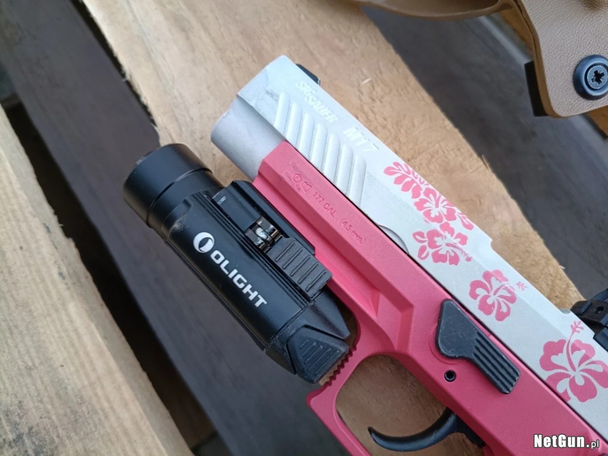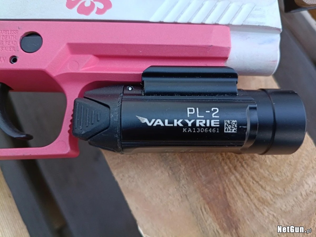 latarka Olight Valkyrie PL-2 (sprawana), w latarce zamontowana jest "listek" blokujący w szynie RIS do Glock (nie wpływa to na montaż latarki na szkielecie SIGa.