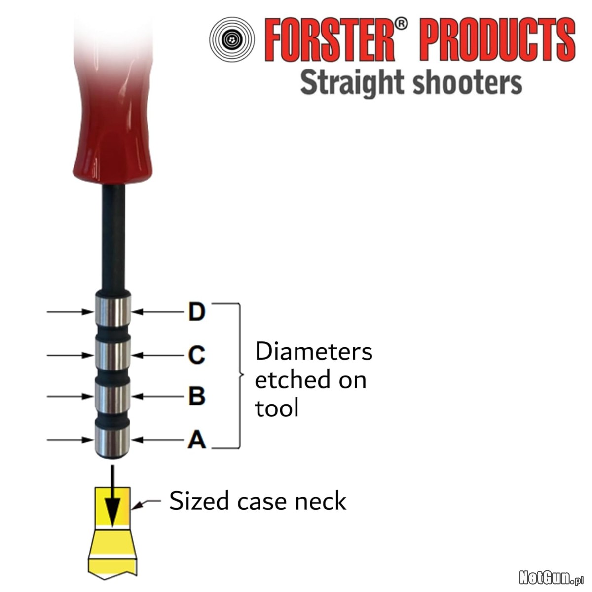 Umożliwia kontrolę wewnętrznych średnic szyjek łusek, celem upewnienia się, że na styku szyjka-ramiona nie utworzył się „pączek” (donut).