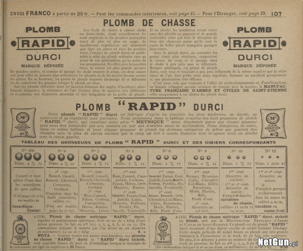 Na sprzedaż śrut ołowiany w ilości 2,1 kg w oryginalnym płóciennym worku stosowany dawniej w elaboracji amunicji śrutowej. Widoczne oznaczenia: "Manufrance Saint-Etienne PLOMB RAPID DURCI". Pochodzenie: Francja, XX wiek. Wielkość śrutu: 2,2 mm (8). Manufacture d’Armes de Saint-Etienne (MF) to znana fabryka broni i komponentów, która od XVIII wieku przez stulecia dostarczała broń, amunicję oraz komponenty do jej elaboracji dla armii francuskiej oraz na rynek cywilny. Wysyłka paczkomatem lub odbiór osobisty w Warszawie na Gocławiu. Jeżeli widzisz to ogłoszenie, to znaczy, że przedmiot jest nadal dostępny.
