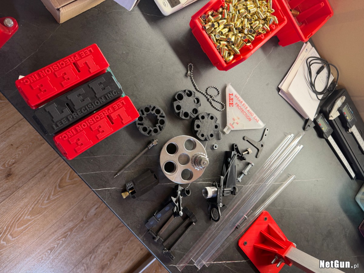 Do sprzedania prasa lee load master z zestawem do 9mm. Prasa od nowości w moich rękach. Przerobiłem na niej ok 12k nabojów. Pomimo, że nie jest to najwyższych lotów sprzęt do elaboracji to da się na niej składać sprawnie powtarzalną amunicję. W zestaw wchodzi podajnik łusek oraz pocisków lee, ale bez automatycznego podajnika widocznego na zdjęciach. Dodatkowo dodaje czujnik zasypu prochu, który dodatkowo poprawia komfort bezpieczeństwa w całym procesie. Dodatkowo kilka części plus dodatkowa głowica. Zainteresowanych zapraszam do kontaktu i preferuje odbiór osobisty w Warszawie.