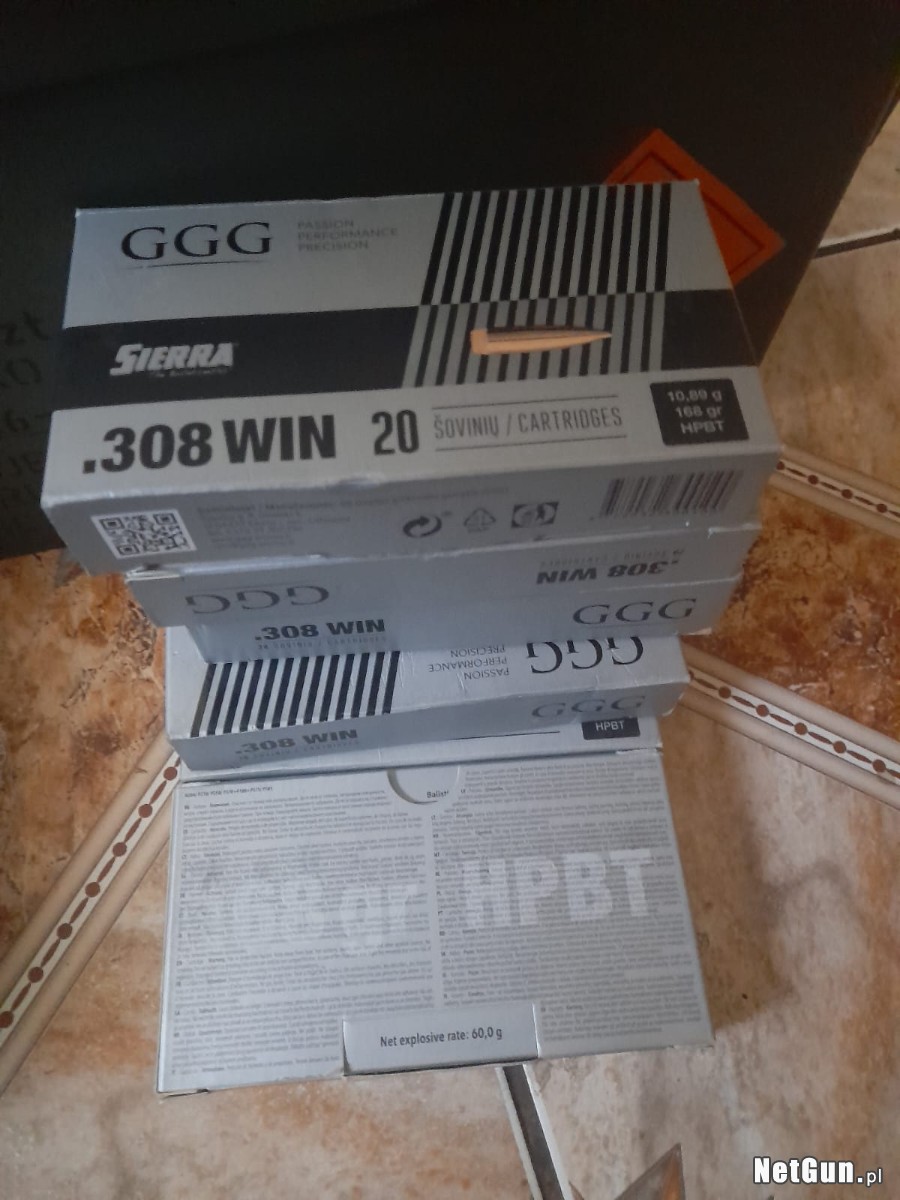 1. Sprzedam Amunicje : 9 paczek amunicji 308 Win GGG HPBT 168gr (sierra) cena 6.00 za sztuke, swietne zrodlo lusek.
