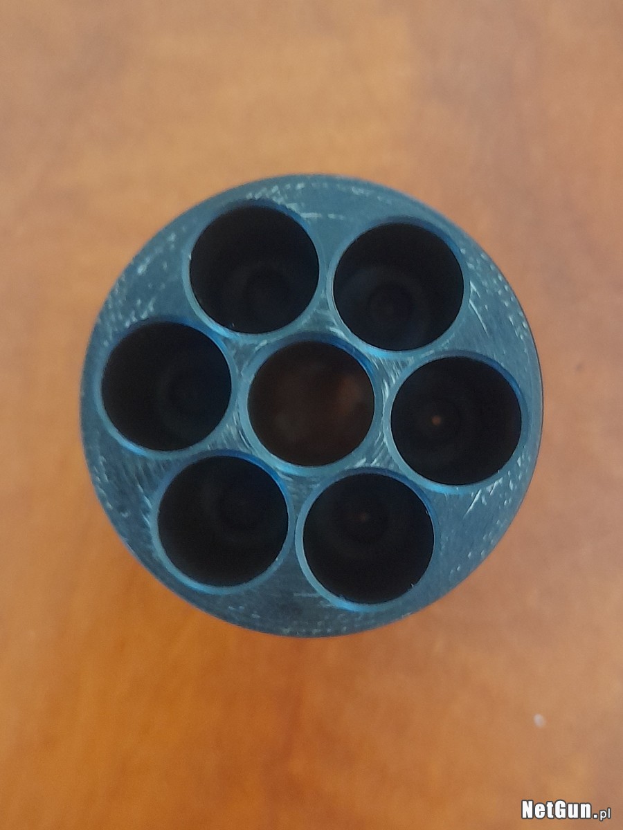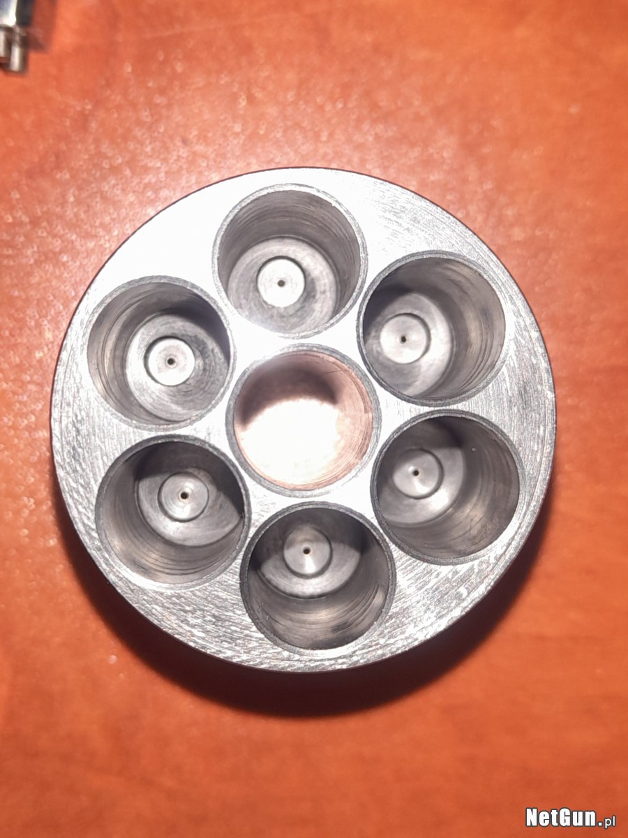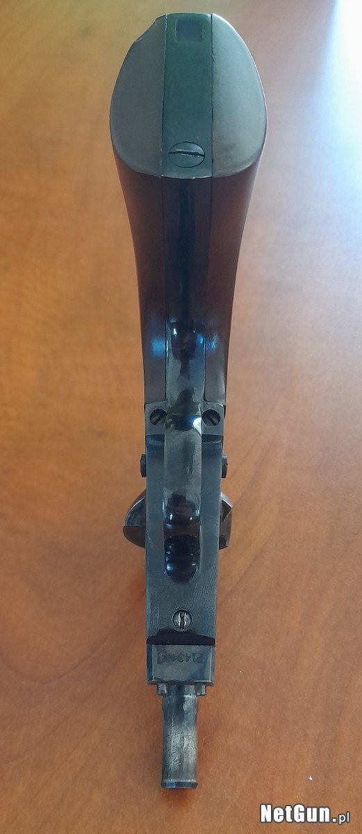 waga 1202g - długość całkowita 13,75" (350mm)- długość lufy 8"(203mm)- głębokość gwintu 0,006" - skok gwintu 1-30" - 7 pól .452 - 7 bruzd .440 - średnica komór .447- kominki 6mmx0.75- orzechowe okładziny chwytu.
