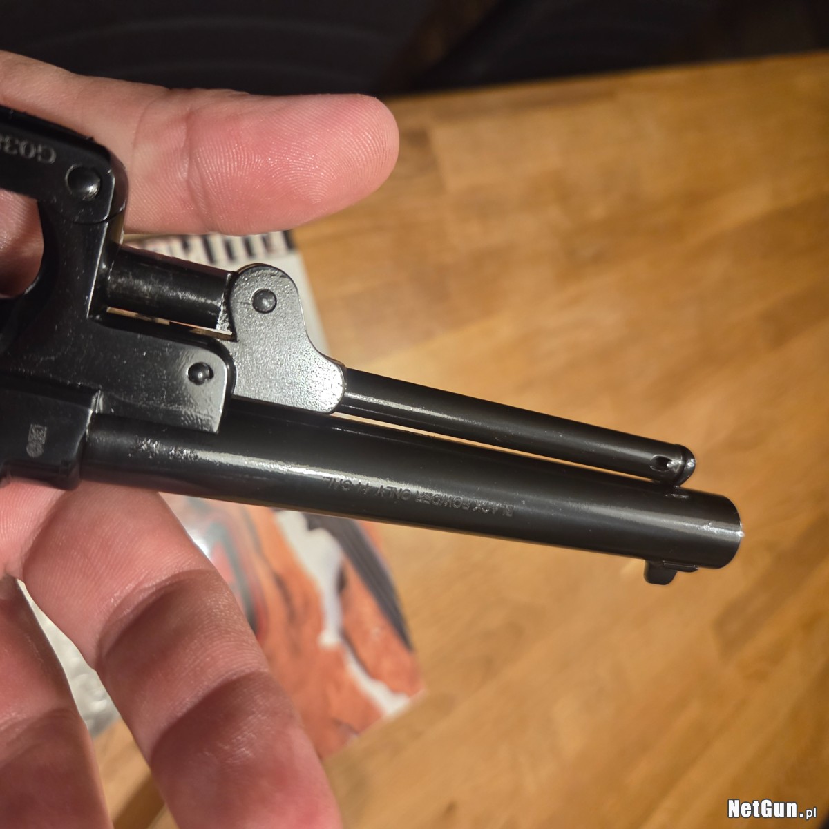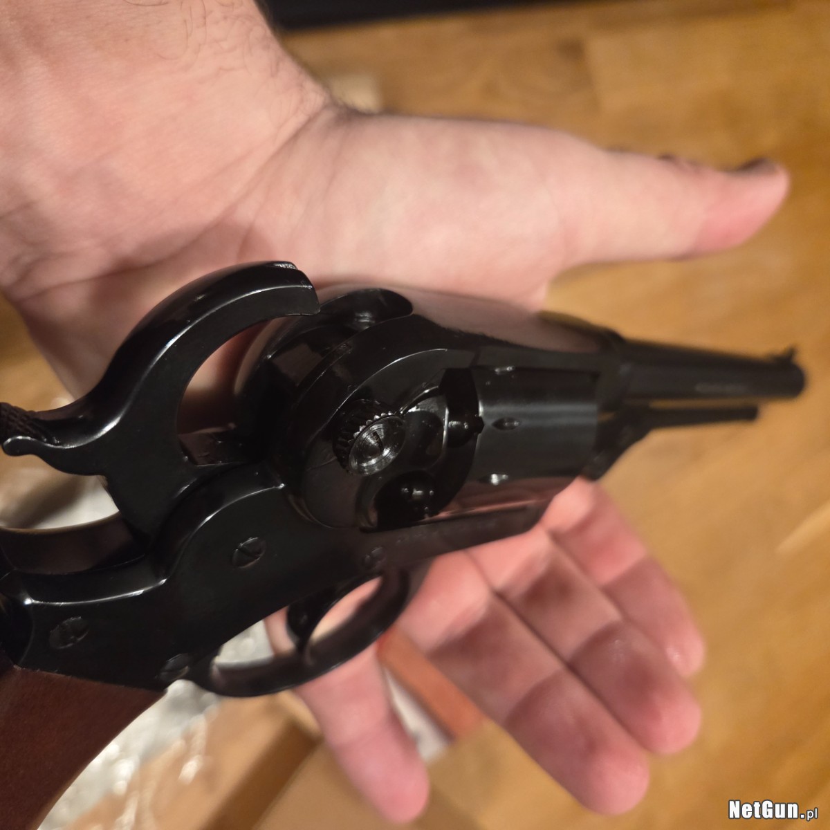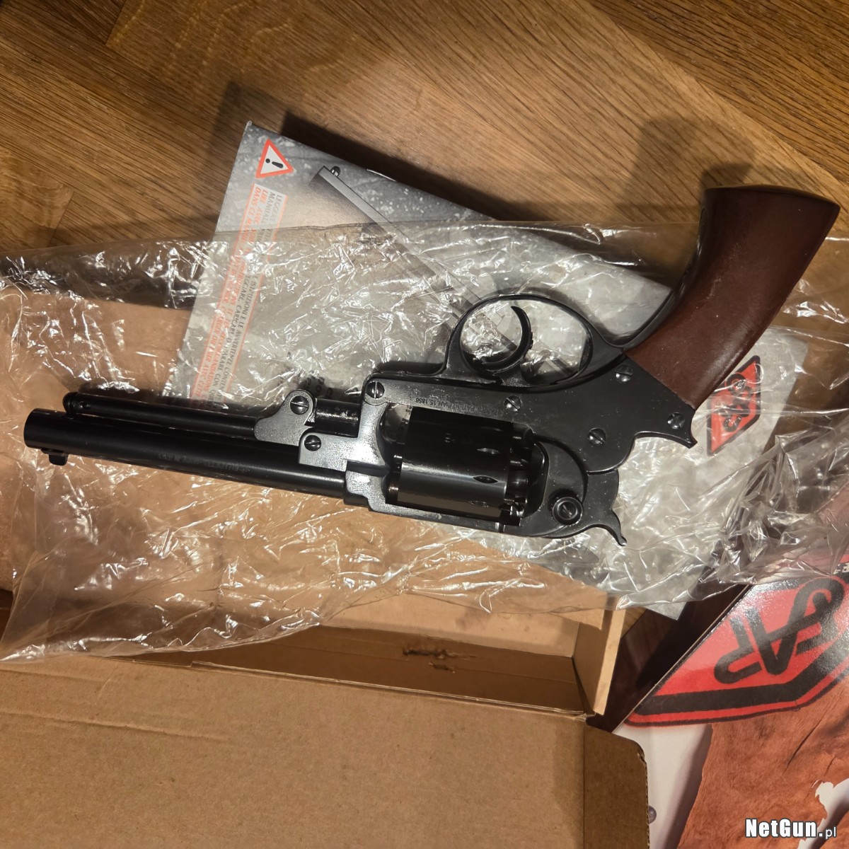 Orginalne pudelko i instrukcja . Stan idealny. Jest to rewolwer czarnoprochowy rozdzielnego ladowania. Nie wymaga pozwolenia na posiadanie broni.