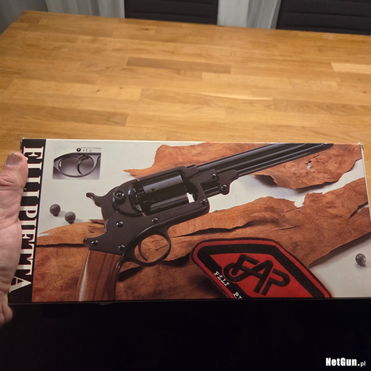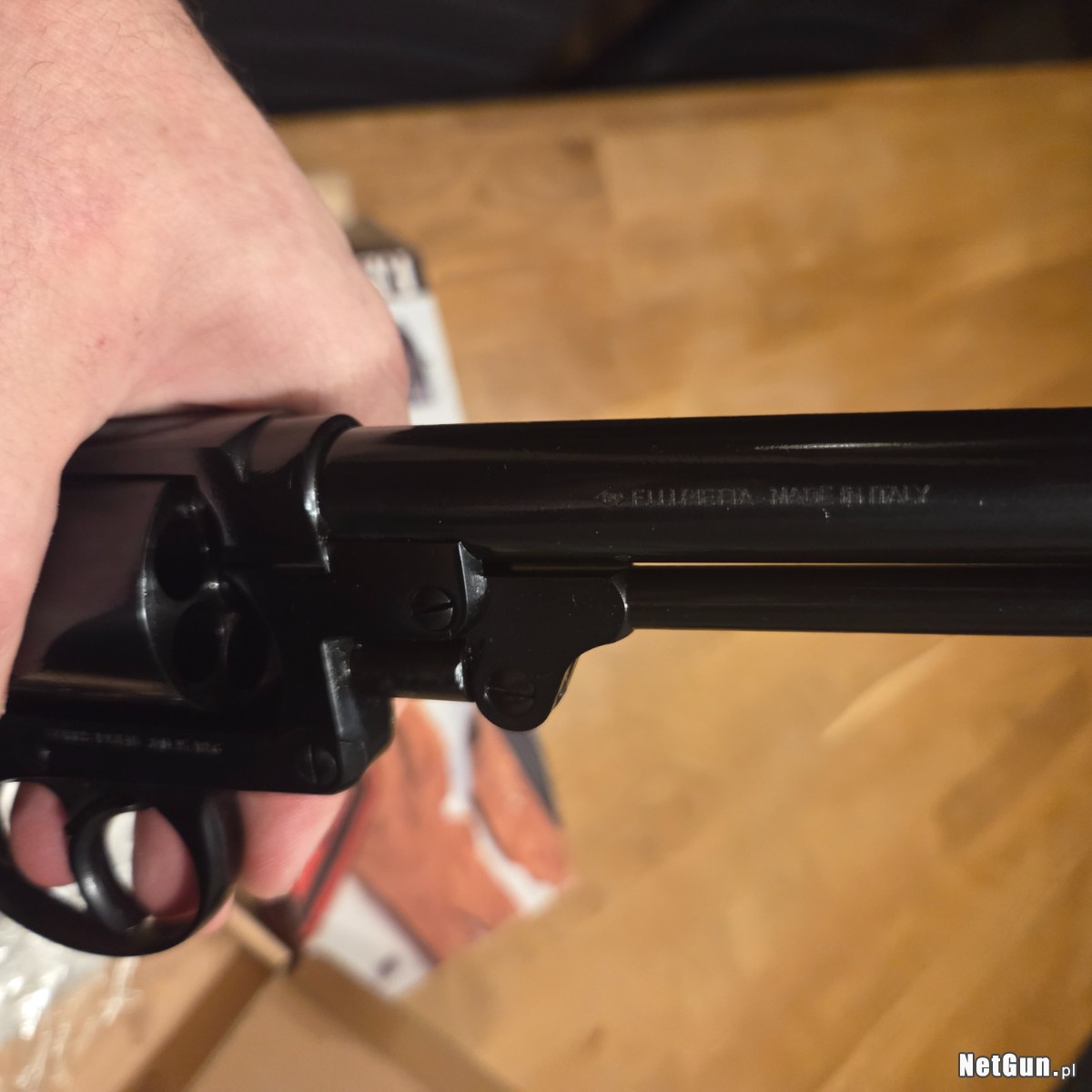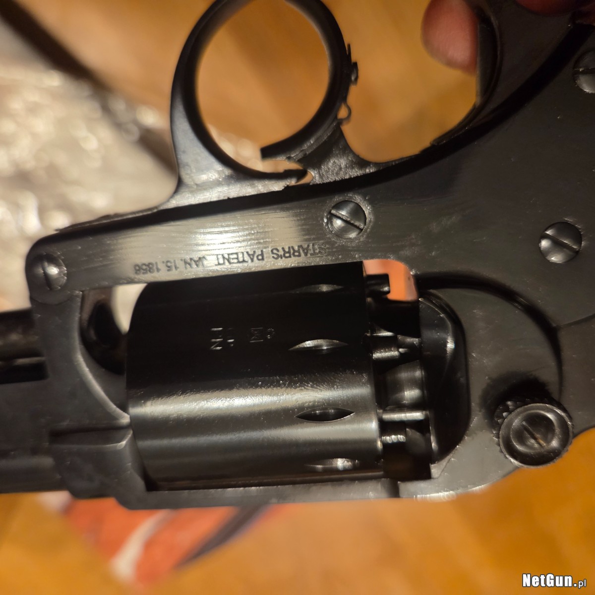 Orginalne pudelko i instrukcja . Stan idealny. Jest to rewolwer czarnoprochowy rozdzielnego ladowania. Nie wymaga pozwolenia na posiadanie broni.