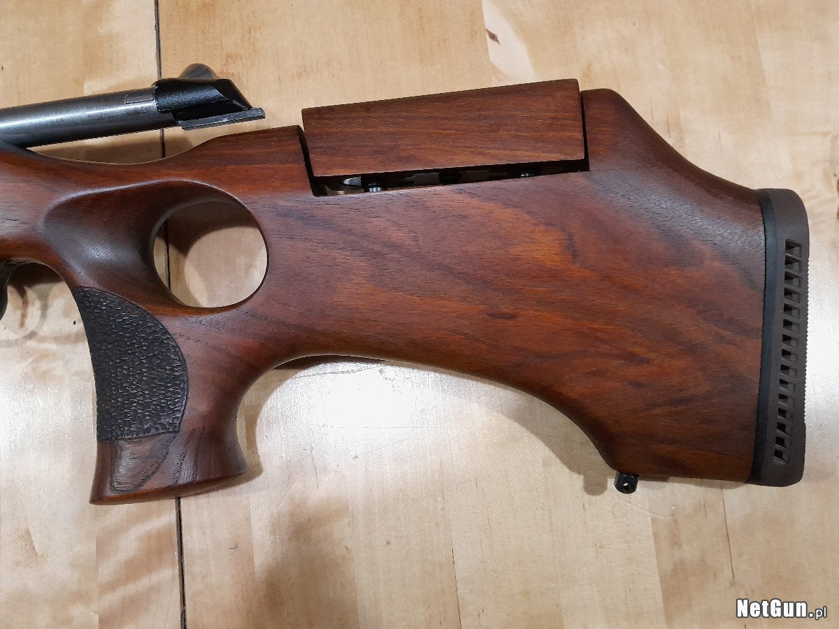 Osada była robiona na indywidualne zamówienie przez poprzedniego właściciela i faktycznie jest zrobiona i wygląda obłędnie. Jak widać na zdjęciu ma regulowana bakę. Będzie idealna dla myśliwego. Jest w stanie idealnym. Ma zainstalowane bączki do pasa. Bardzo pewny chwyt pistoletowy z chropowatą powierzchnią - super leży w dłoni.