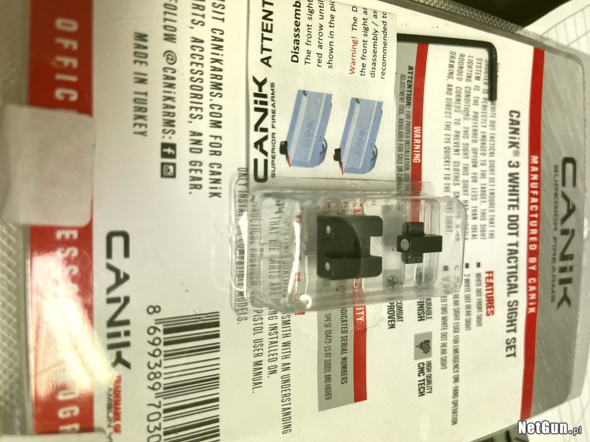 Używana muszka i szczerbinka z białymi kropkami (MMAC-202) 3-punktowy biały celownik taktyczny. Zestaw CANİK 3 Point White Tactical Sight pozwala strzelcowi na perfekcyjne namierzenie celu.