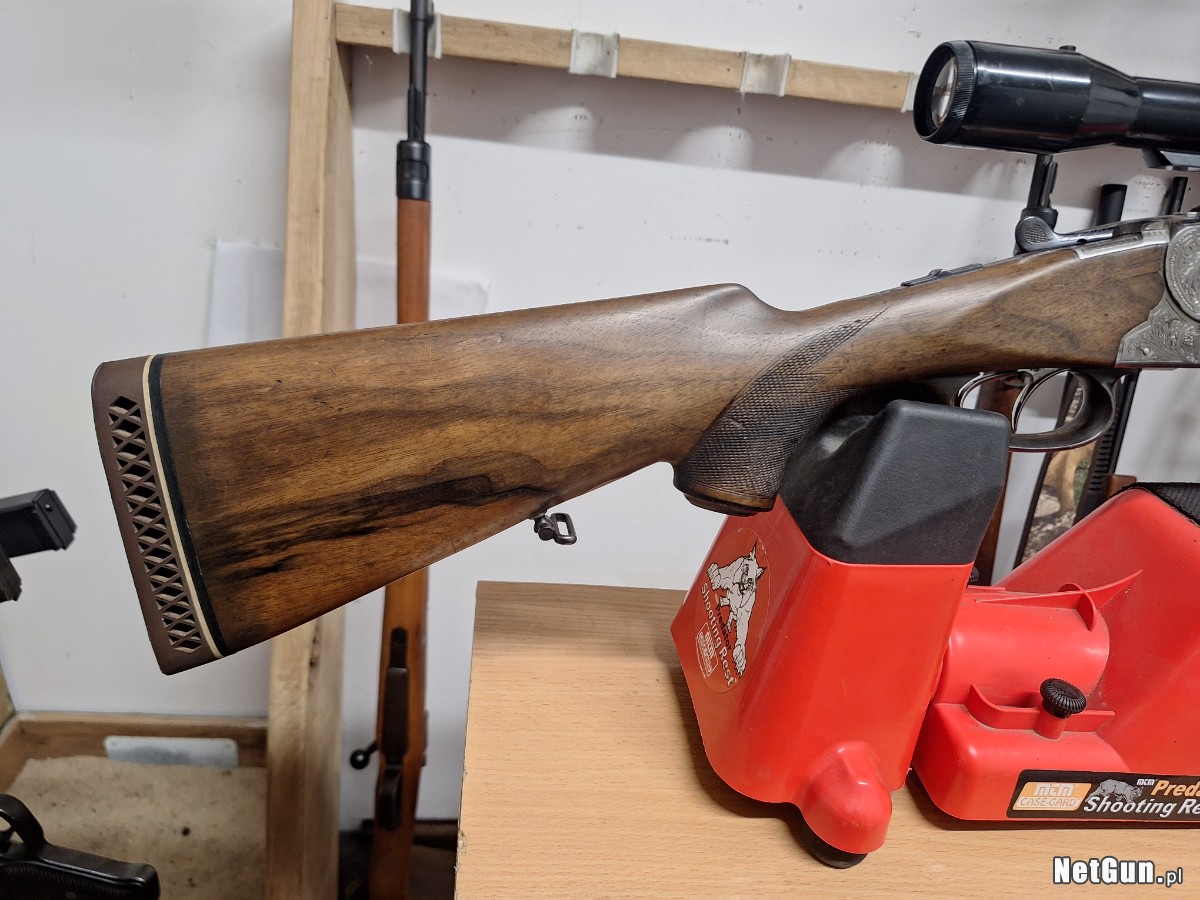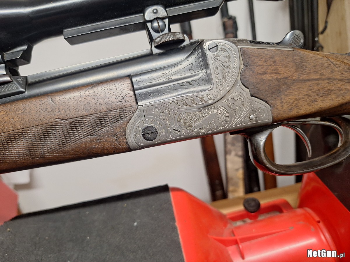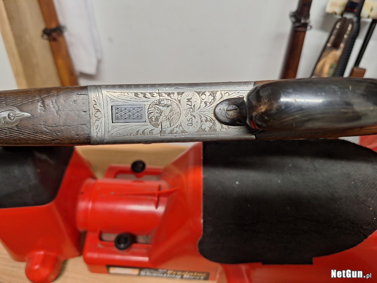 Piękna kniejówka niemieckiej produkcji Zella-Mehlis wojenna produkcja 1940 r są nawet zachowane gapy odbiory nitro i przystrzał , lufy Krupp lustro długości 62,5 cm kaliber 16/70-6, 5x57r bardzo ładna oksyda nie powycierana baskila ręcznie pięknie zdobiona oczywiście nie ma mowy o jakich luzach klikaniu czy innych niespodziankach , drewno w bardzo dobrym stanie choć ma powierzchniowe ryski , wystarczy spolerowac 4 x olej i nabierze pięknego sloistego koloru bardzo delikatna i lekka jak zabawka :) dla dziecka. Zapraszam do Łowicza wszystko do obejrzenia dotknięcia sprawdzenia kupno na fakturę