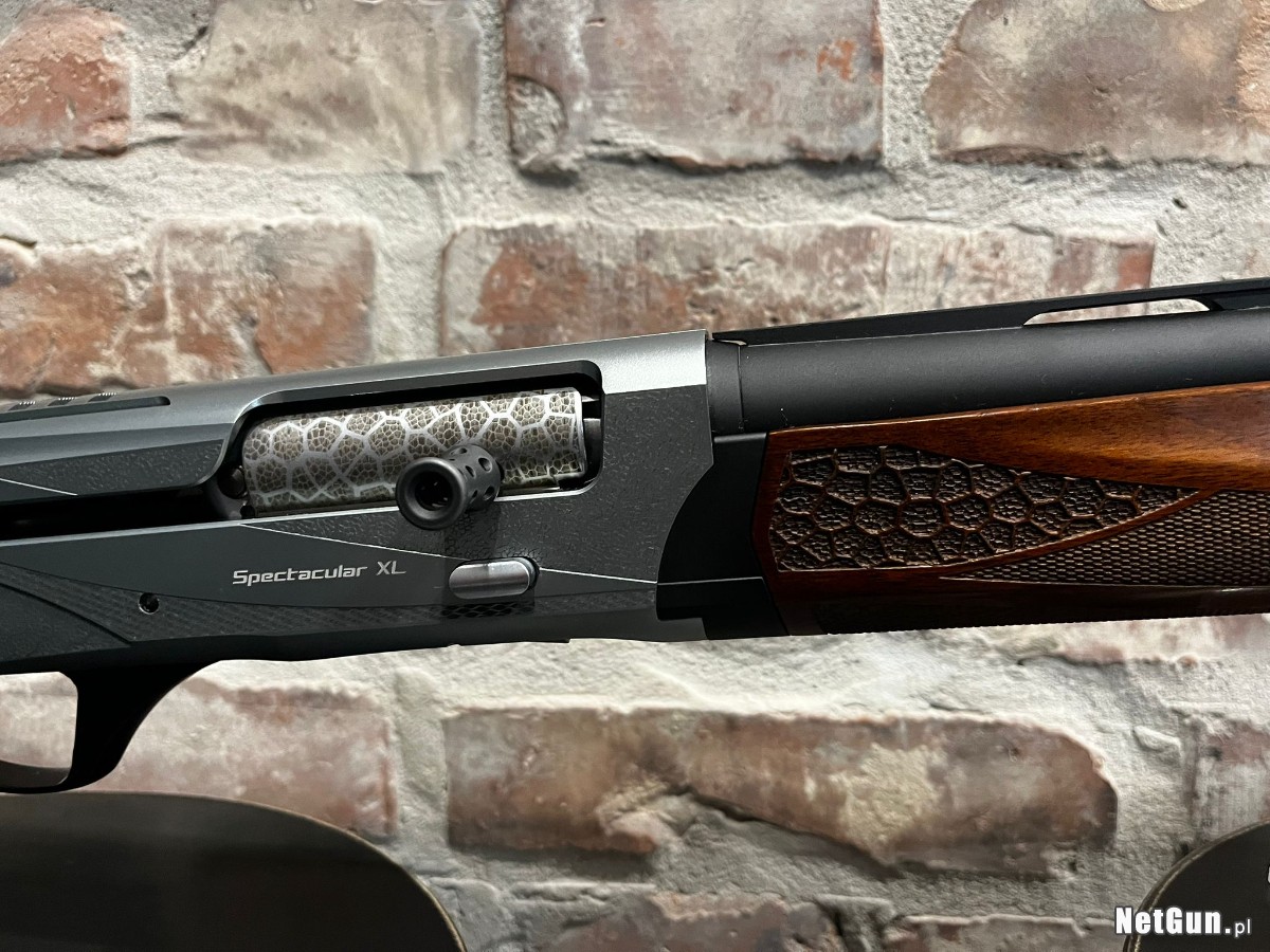 Strzelba Eternal Spectacular XL 28" kal. 12/76. Strzelba używana, zakupiona w naszym sklepie w 2025 roku, stan b. dobry. Właściciel wymienił muszkę na światłowodową (oryginalna w komplecie wraz z czokami i pokrowcem). Magazynek rurowy 4+1, długość lufy 28". Produkt koncesjonowany, dostępny za okazaniem odpowiednich dokumentów.