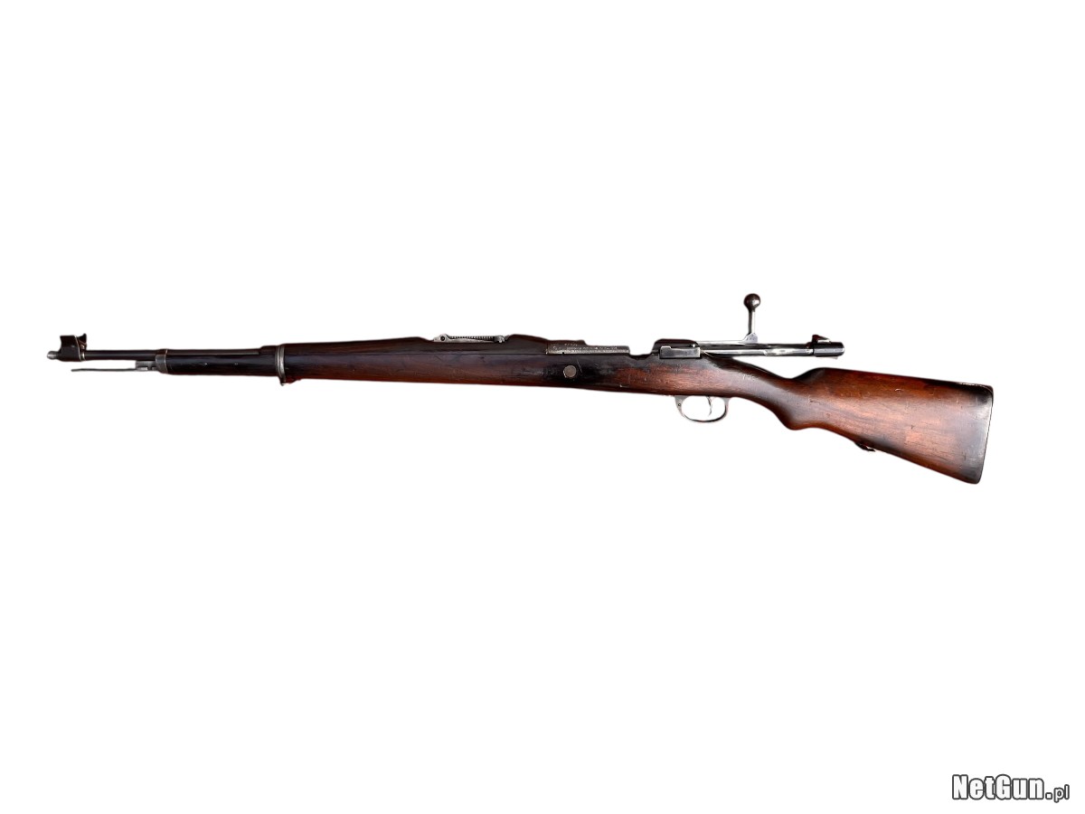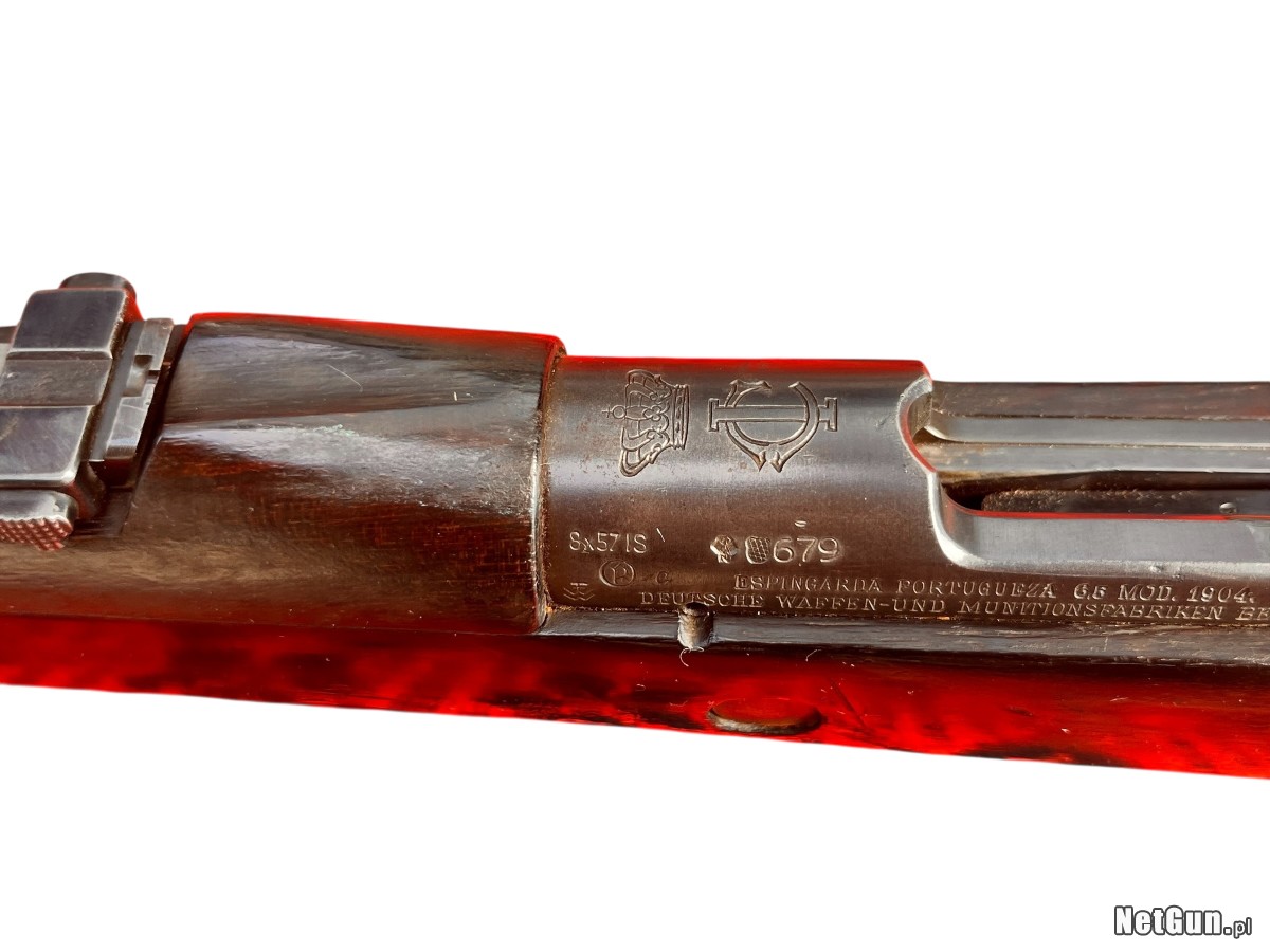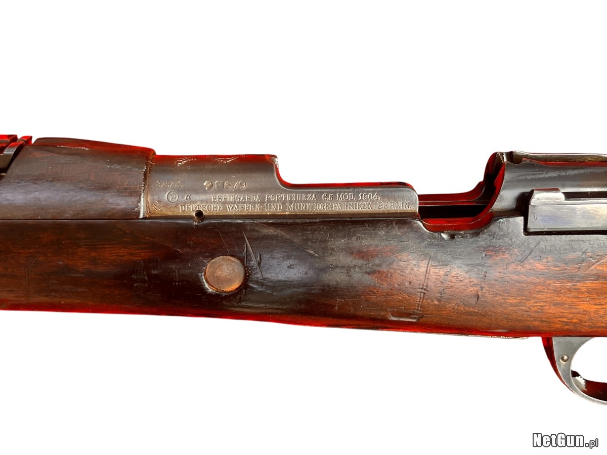 Unikalny portugalski karabin Mauser-Vergueiro M1904/39 w kalibrze 8x57 IS. To historyczna broń, pierwotnie produkowana dla armii portugalskiej w renomowanych niemieckich zakładach DWM. W 1939 roku, w celu unifikacji amunicji z nowszymi karabinami, został on profesjonalnie przekonwertowany z oryginalnego kalibru 6,5mm na nabój 8x57 IS. Konstrukcja łączy cechy systemu Mausera z unikalnymi rozwiązaniami Vergueiro. Ogromnym atutem jest pełna zgodność numeryczna, co jest rzadkością w broni konwertowanej. Stan bardzo dobry minus, adekwatny do wieku.