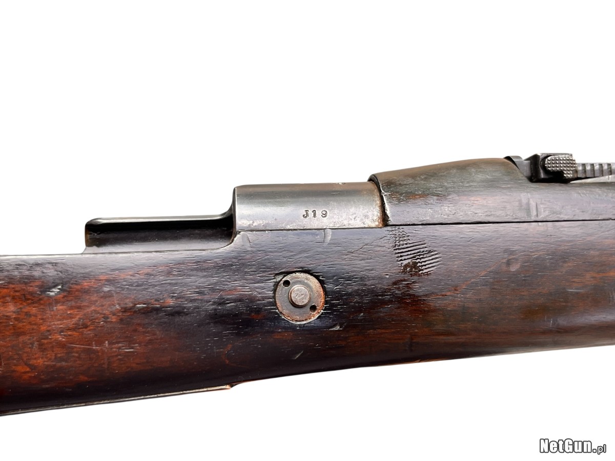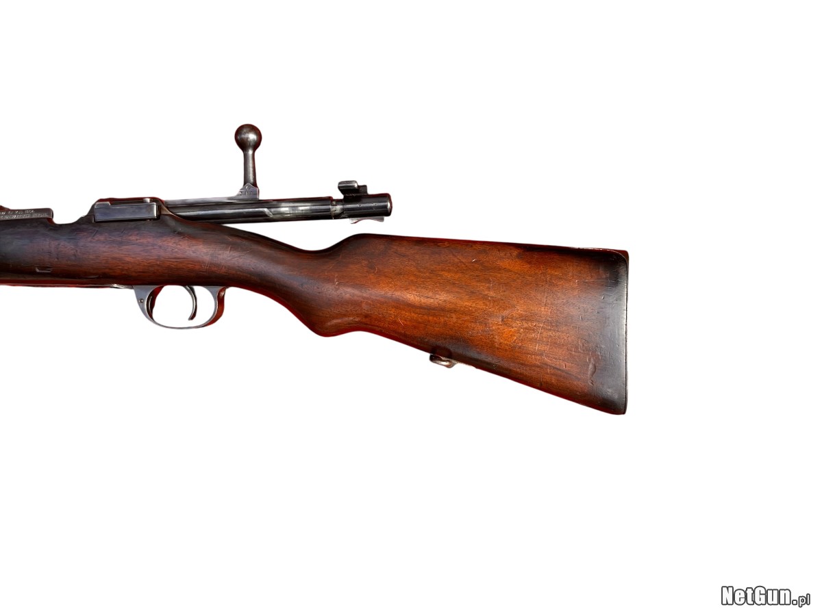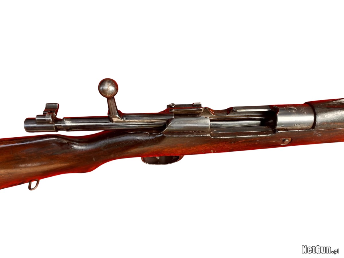 Unikalny portugalski karabin Mauser-Vergueiro M1904/39 w kalibrze 8x57 IS. To historyczna broń, pierwotnie produkowana dla armii portugalskiej w renomowanych niemieckich zakładach DWM. W 1939 roku, w celu unifikacji amunicji z nowszymi karabinami, został on profesjonalnie przekonwertowany z oryginalnego kalibru 6,5mm na nabój 8x57 IS. Konstrukcja łączy cechy systemu Mausera z unikalnymi rozwiązaniami Vergueiro. Ogromnym atutem jest pełna zgodność numeryczna, co jest rzadkością w broni konwertowanej. Stan bardzo dobry minus, adekwatny do wieku.