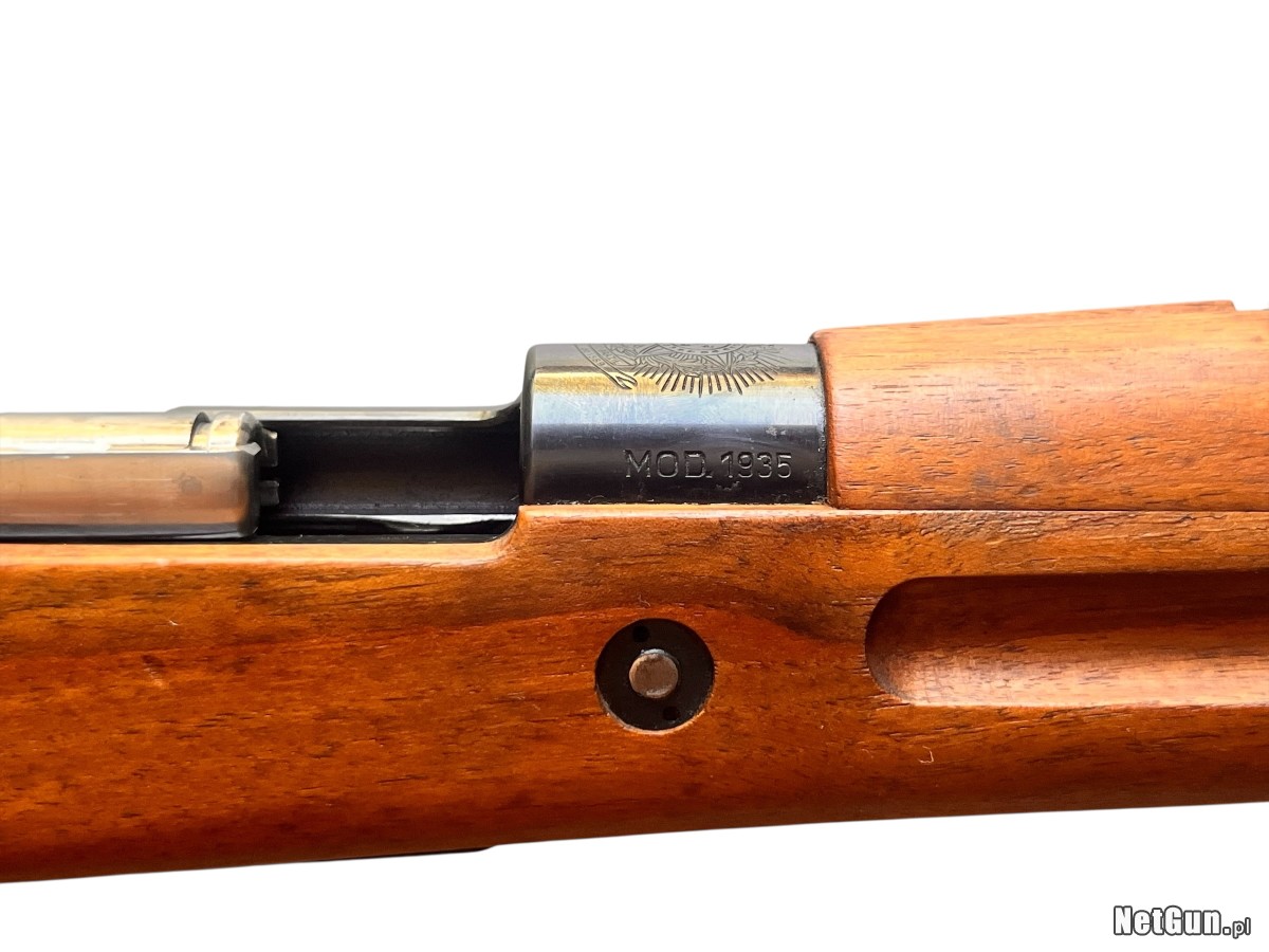 Na sprzedaż brazylijski karabin kontraktowy Mauser M1935 w klasycznym kalibrze 7x57 Mauser. Wyprodukowany w Niemczech przez legendarne zakłady Mauser-Werke A.G. w Oberndorfie. Egzemplarz z wczesnej serii produkcyjnej (1935/36), uważanej za jedne z najlepiej wykonanych Mauserów eksportowych w historii, cechującej się niedoścignioną jakością okresu pokoju. Broń ta była na wyposażeniu armii brazylijskiej. Ogromnym atutem jest pełna zgodność numeryczna. Stan techniczny bardzo dobry – lufa w ładnym stanie z wyraźnym, ostrym gwintem.