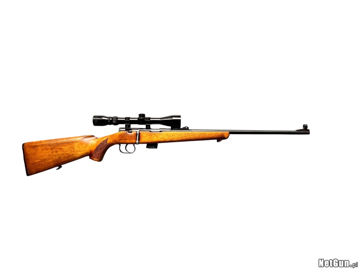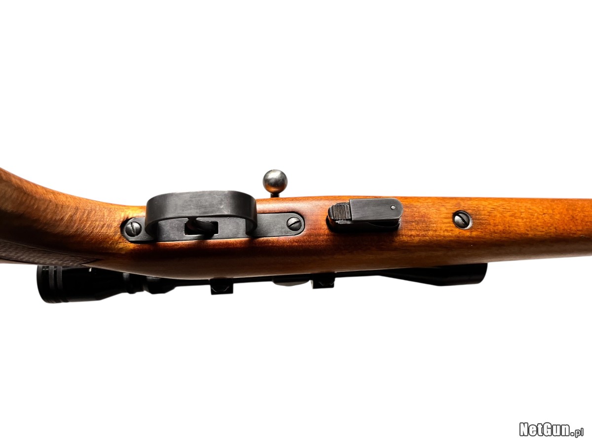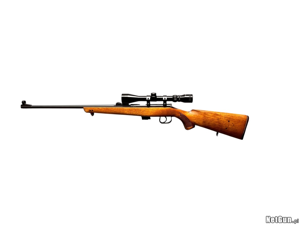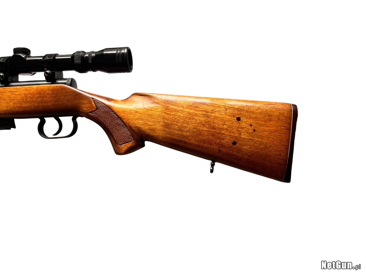 Radziecki karabin repetier TOZ 17-01 w kalibrze .22 LR, klasyczna konstrukcja produkowana w zakładach w Tule, ceniona za niezawodność i precyzję. Egzemplarz wyposażony w lunetę nieznanego producenta o parametrach 3x8, co czyni go praktycznym wyborem do strzelania rekreacyjnego i treningowego. Lufa w ładnym stanie z wyraźnym gwintem, oksyda dobrze zachowana. Stan bardzo dobry minus – broń w pełni sprawna technicznie, gotowa do użytku.