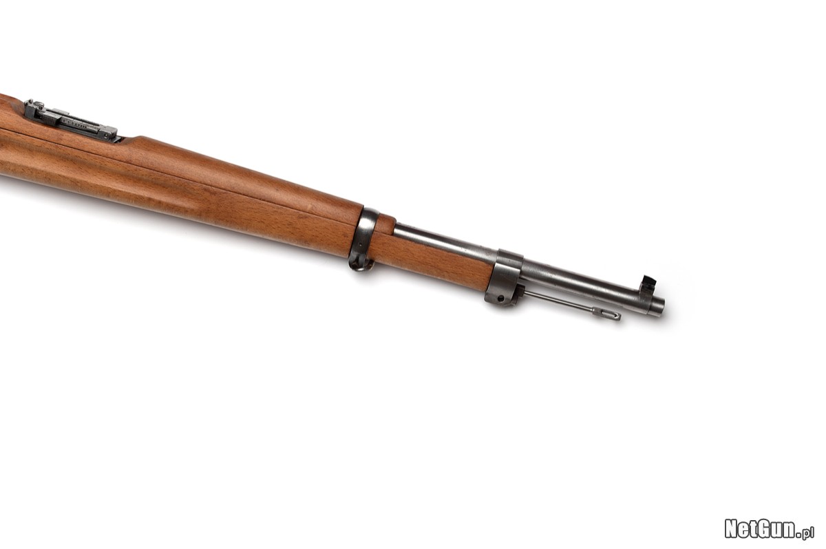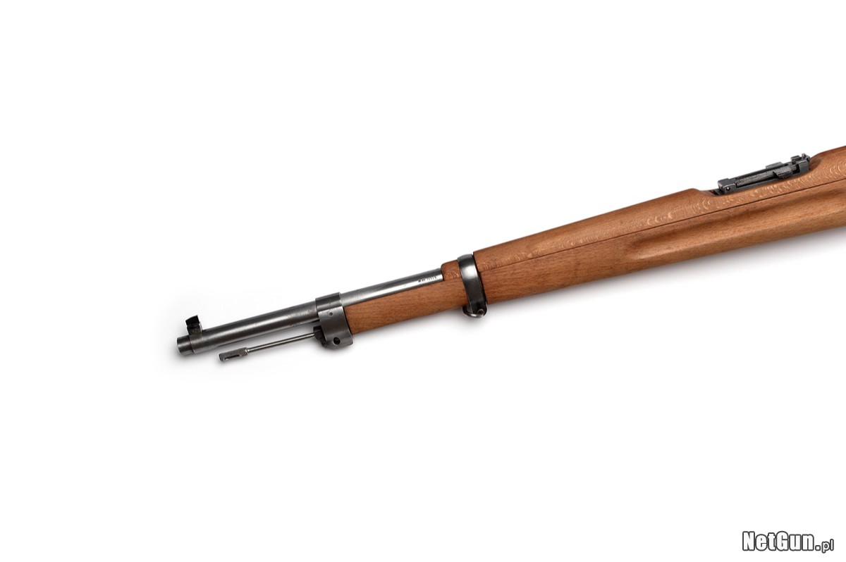 Karabin w stanie pomiędzy bardzo dobrym minus, a dobrym plus. Oksyda na komorze zamkowej w stanie bardzo dobrym - bez zarysowań i uszkodzeń. Przewód lufy w stanie dobrym plus - przy oględzinach okiem nieuzbrojonym wydaje się idealny - błyszczący na całej powierzchni, gwint wyraźny, jednak badanie boroskopem zdradza bardzo drobne matowe plamki rozsiane na całej powierzchni. Osada w stanie bardzo dobrym - brak zarysowań, wytarć i uszkodzeń, dosłownie jedno-dwa wgniecenia. Sprawny, po przeglądzie rusznikarskim i testach na strzelnicy. Zgodny numerycznie. Długość całkowita 112m, długość lufy 60cm.
