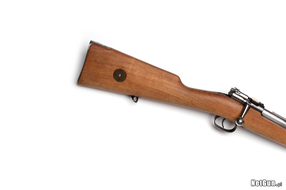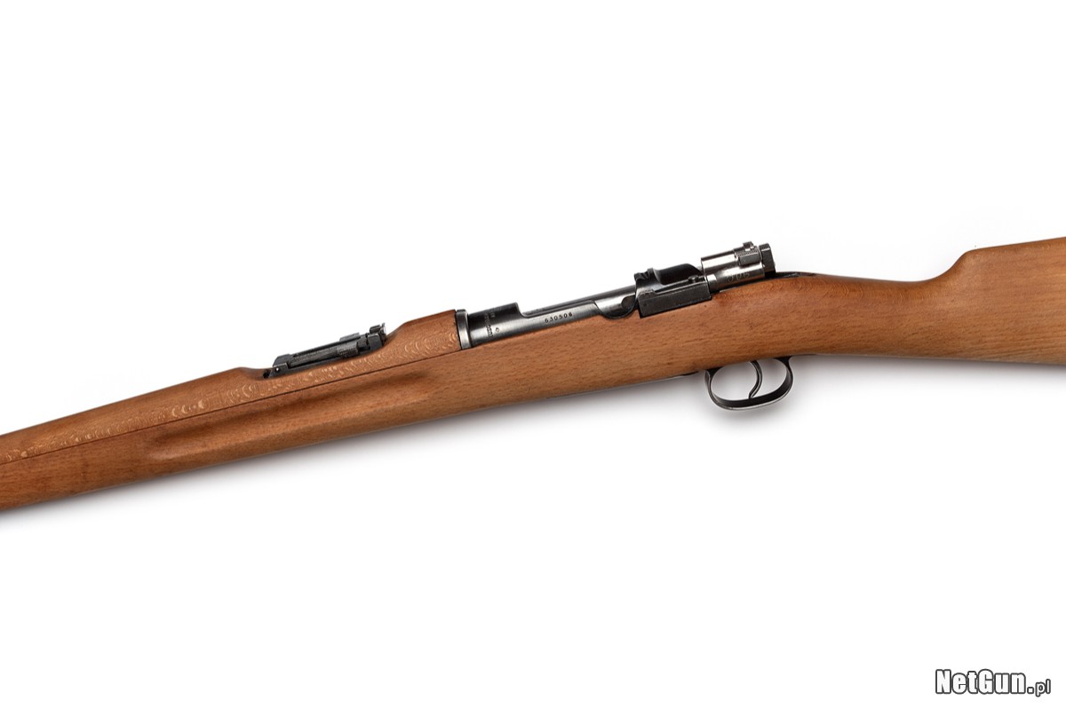 Oferowany egzemplarz pochodzi z 1942r. i został wyprodukowany w zakładach Husqvarna Vapenfabriks AB. Udział zakładów Husqvarna w produkcji modelu M96 jest niewielki - zostało wyprodukowane łącznie ok. 20tys. egzemplarzy w krótkim okresie 1942-1944 (wobec ponad 600tys. egzemplarzy powstałych w zakładach Mauser i Carl Gustafs). Wersja ta posiadała nagwintowany wylot lufy do opcjonalnego użytkowania z odrzutnikiem do ślepej amunicji treningowej.