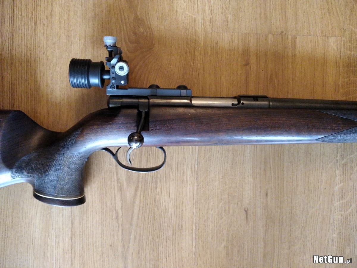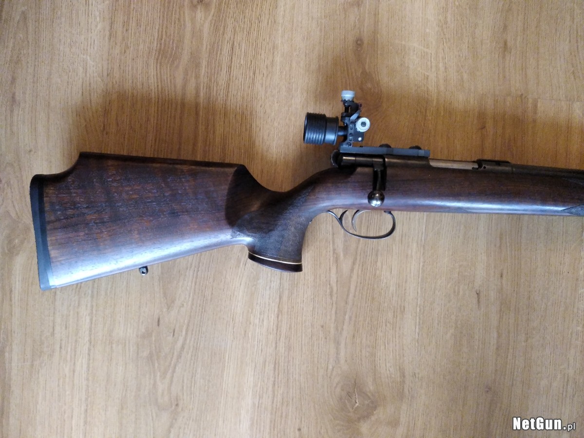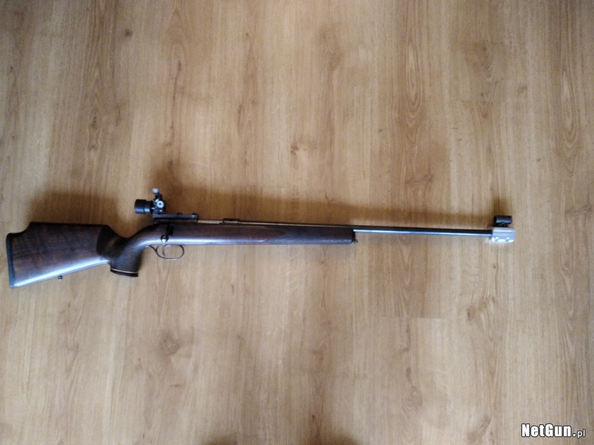 Karabin jednostrzałowy centralnego zapłonu, Anschutz kal 222 Rem. Przyrządy celownicze diopter i mucha tunelowa, sportowy spust, bardzo lekki regulowany. Broń w bardzo dobrym stanie technicznym i wizualnym, lufa błyszcząca z wyraznym gwintem. Możliwość dowozu.