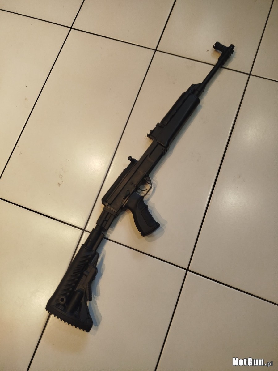 CZ modernizowana z wersji wojskowej ( chromowana lufa ) w kal.7,62 x 39 , wymieniona kolba, na regulowaną i z amortyzatorem odrzutu, oraz chwyt przedni, 4 magazynki, przemalowana na czarno. Dodaję wszystkie oryginalne elementy .