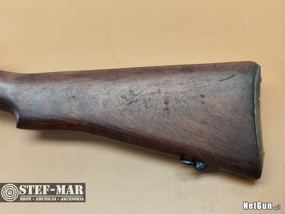 Jeden z krabinów Enfield,produkowanych w Australii,w zakładach w Lithgow.Karabinów z niskim montażem,takim jak prezentowana broń,powstało nieco mniej niż 500 egzemplarzy.Prezentowana broń,posiada wyraźne ślady użytkowania na łożu:kolba oraz mechanika-b.db