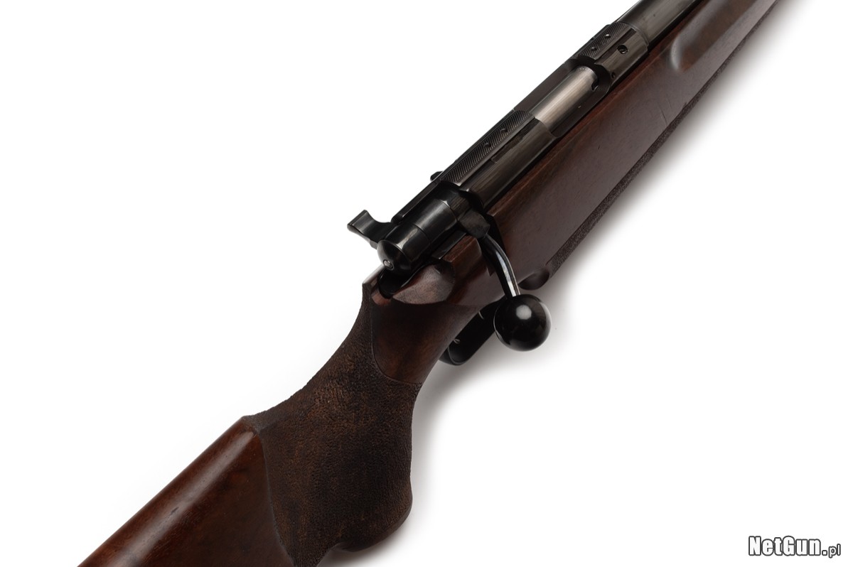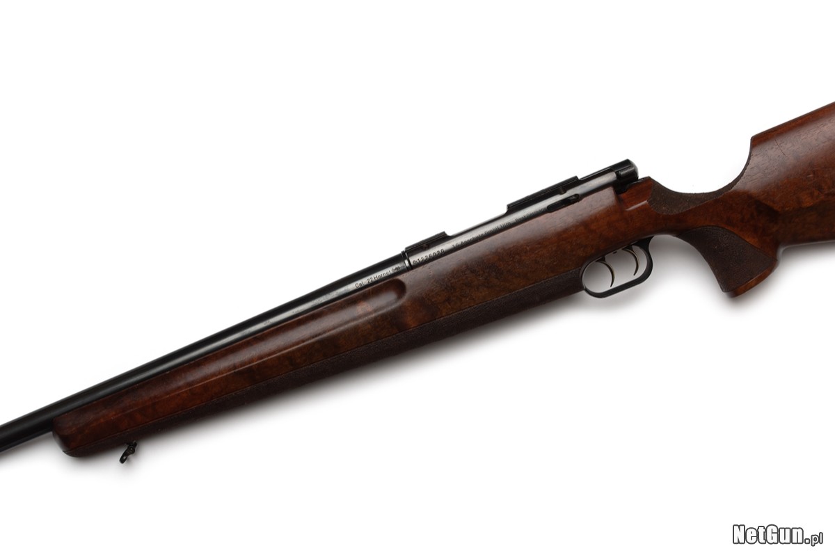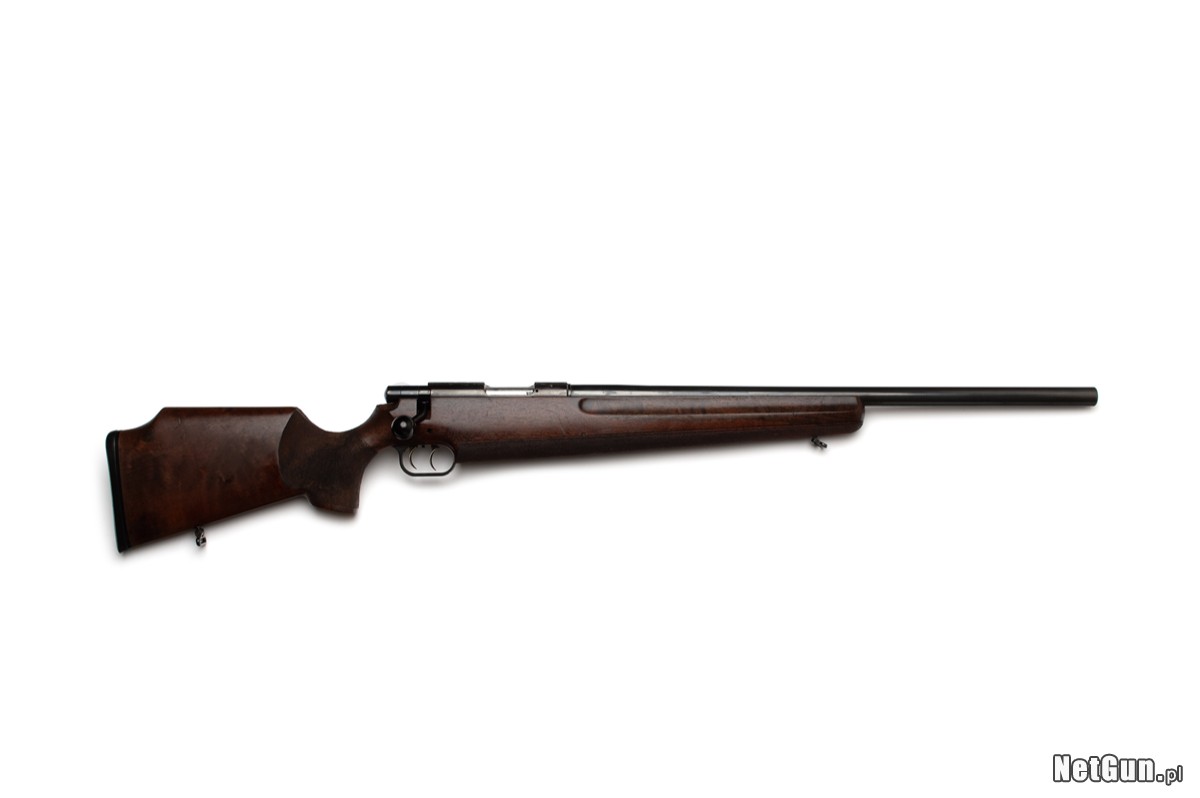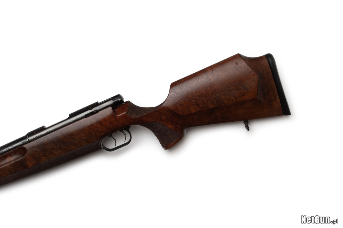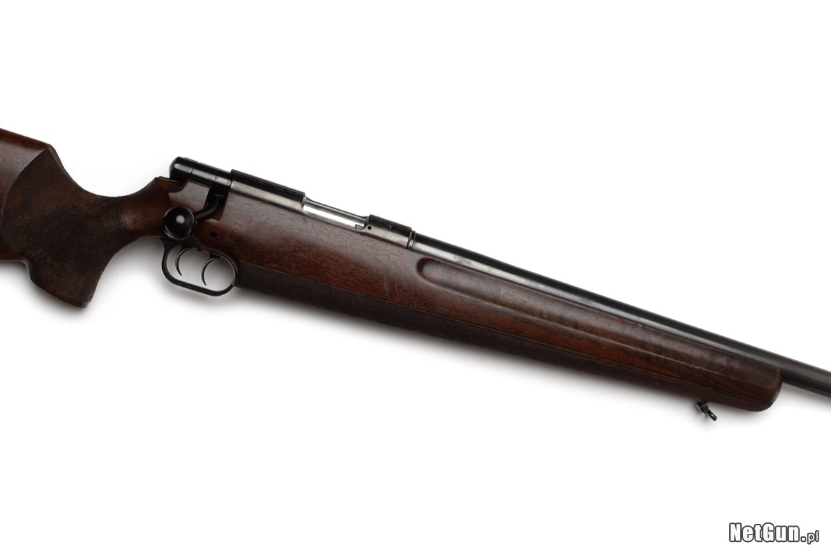 Karabin jednostrzałowy centralnego zapłonu Anschutz Mod. 1432, kal. .22 Hornet. Karabin nominalnie zaprojektowany do strzelań sportowych, sprawdzi się również w łowisku - od niedawna broń w kalibrze .22 Hornet można rejestrować do celów łowieckich. Wyposażony w ciężką pływającą matchową lufę i regulowany mechanizmem spustowy z przyspiesznikiem. Przyspiesznik skraca drogę ściągania języka spustowego dając możliwość strzelania tradycyjnie, wybierając luz, po którym następuje opór i strzał lub z przyszpiesznikiem, gdy strzał następuje natychmiast po lekkim dociśnięciu języka spustowego. Rozwiązanie takie daje dużą elastyczność w wykorzystaniu karabinka w zależności od zastosowania i doświadczenia. Mechanizm jest fantastycznie wyregulowany, dając ogromną przyjemność z użytkowania.