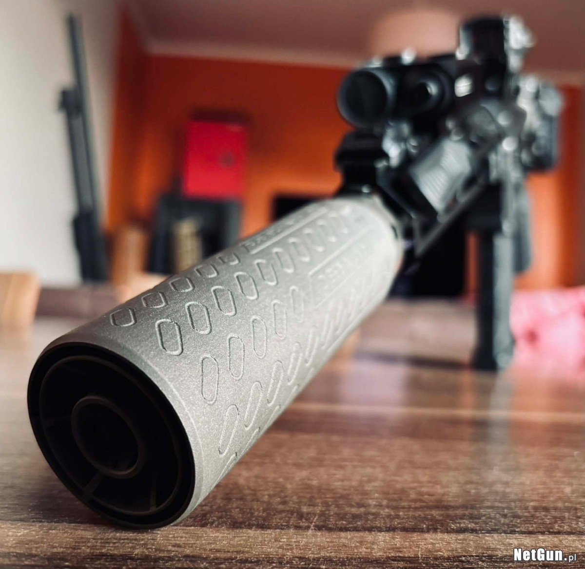 Karabin z tłumikiem B&T QD ( drukowany inconel 718 ) , świetne urządzenie na przejściowce tytanowej. Karabin z 2024 roku.