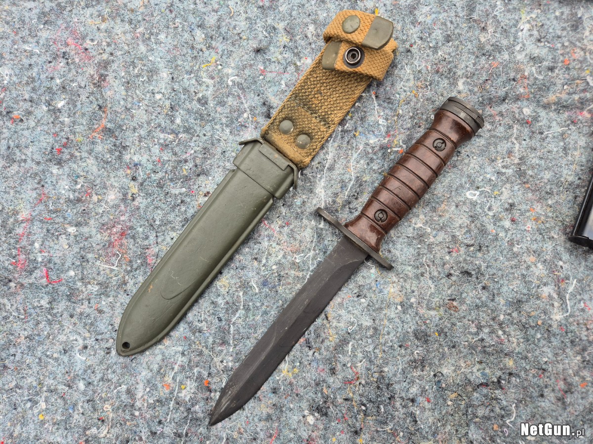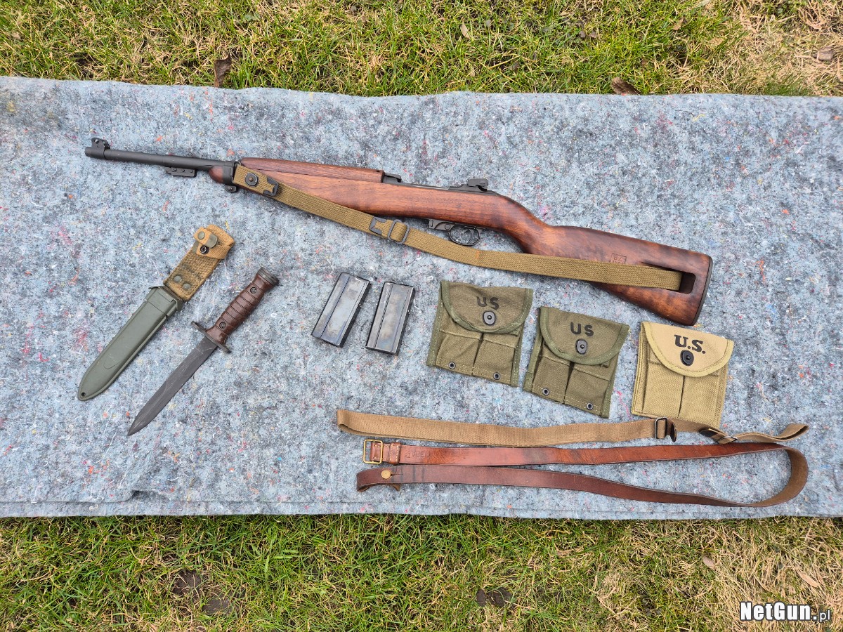 Mam na sprzedaż bardzo fajny zestaw składający się z karabinku M1 Carbine oraz dodatkowych akcesoriów do niego w postaci: 3 rodzajów pasów nośnych (oryginalny pas amerykański z okresu 2 Wojny Światowej oraz dwa pasy produkcji powojenne z Włoch oraz Austrii), dodatkowego oryginalnego magazynka na 15 sztuk naboi, 3 ładownic (2 oryginalne powojenne oraz jedna kopia wojennej) oraz oryginalnego włoskiego bagnetu do M1 Carbine. Karabin w świetnym stanie zachowania. Dawano z drobnymi otarciami wynikającymi z użytkowania. Oksyda/powłoka ochronna na bardzo dobrym poziomie. W lufa stanie bardzo dobrym, widoczne lekkie zmatowienia nie wpływające na funkcjonowanie broni. Bardzo fajne skupienie na 100 metrach (amunicja Sellier&Bellot). Polecam do kolekcji i na strzelnicę. Możliwość zakupu w Grudziądzu lub w okolicach Torunia/Inowrocławia po wcześniejszym umówieniu terminu. Cena 4700 złotych do rozsądnej negocjacji.