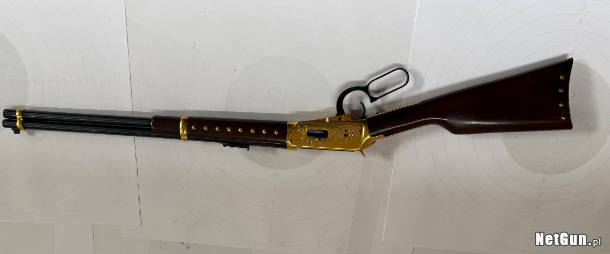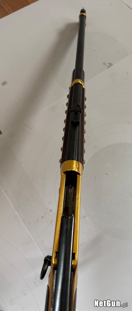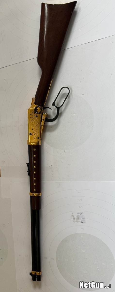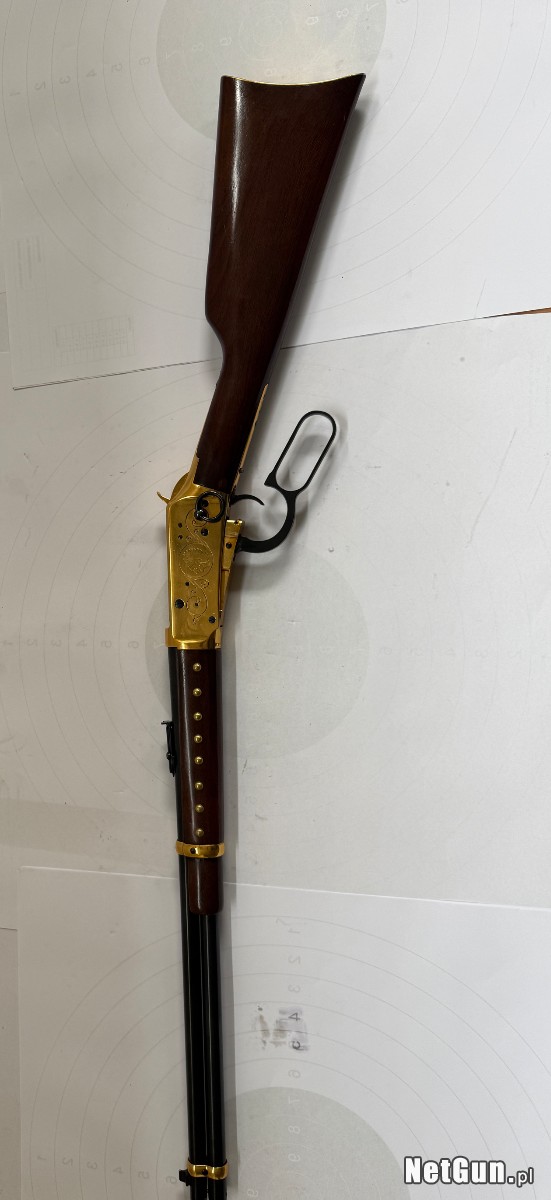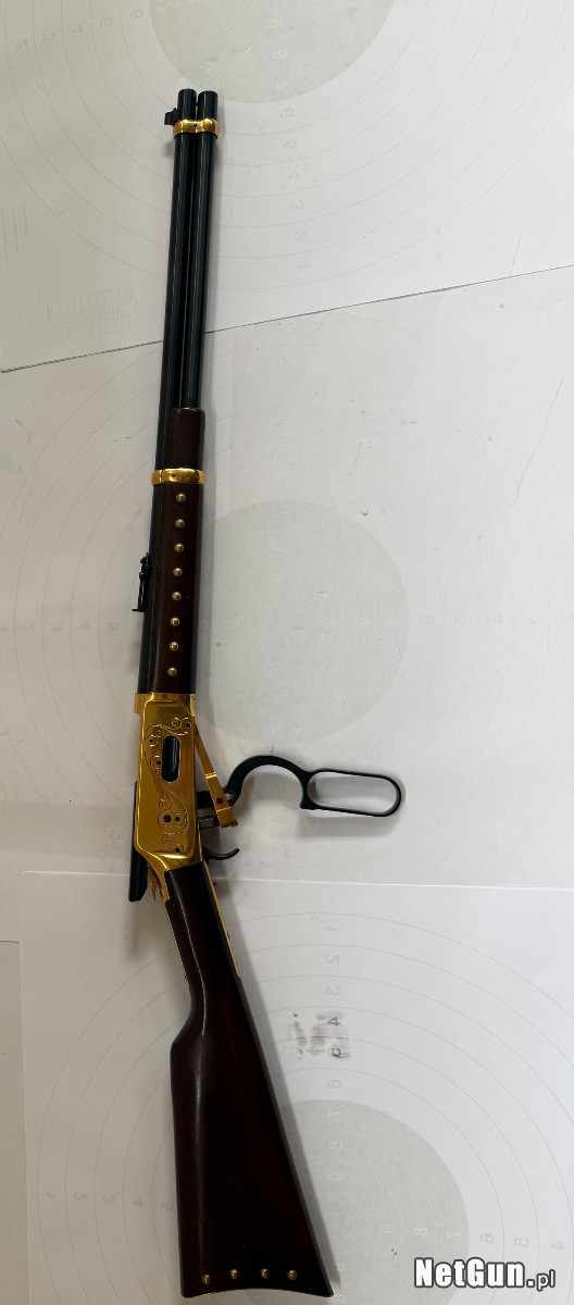 Broń wizualnie i technicznie w stanie idealnym, piękne złocenia na karabinku, kolba drewno bez zniszczeń, pęknięć. Wersja okolicznościowa The Great Gold Strike, Klondike Commemorative. Technicznie broń bez zastrzeżeń.