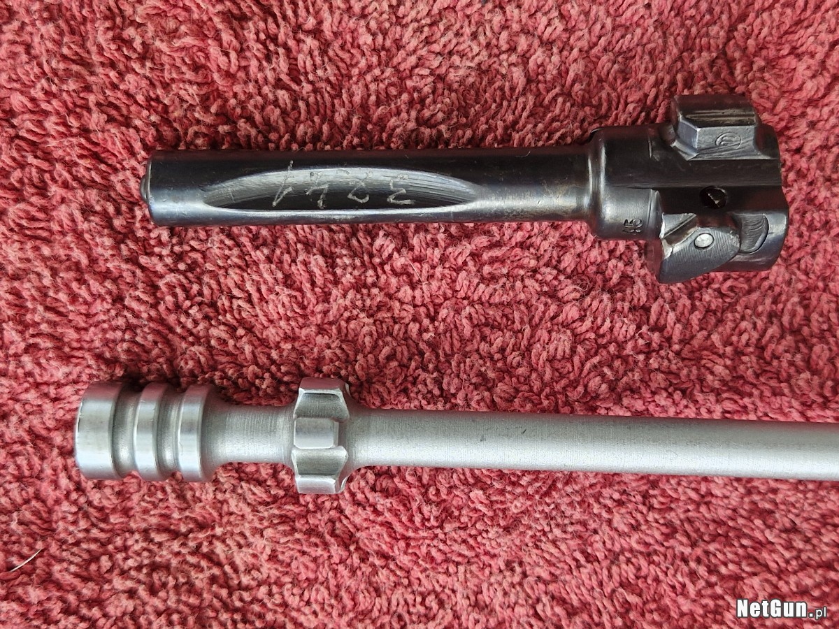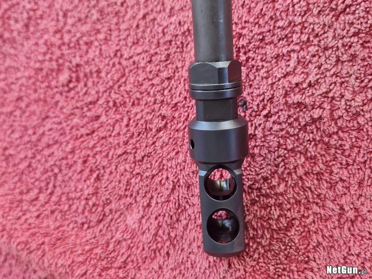 Założony kompensator odrzutu Cerber, chwyt przedni FAb oraz akcesoryjna muszka. Wszystkie oryginalne części w pakiecie.