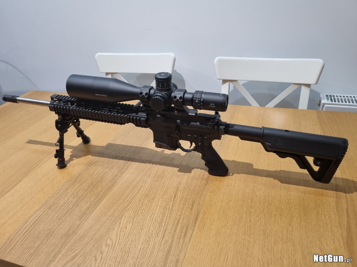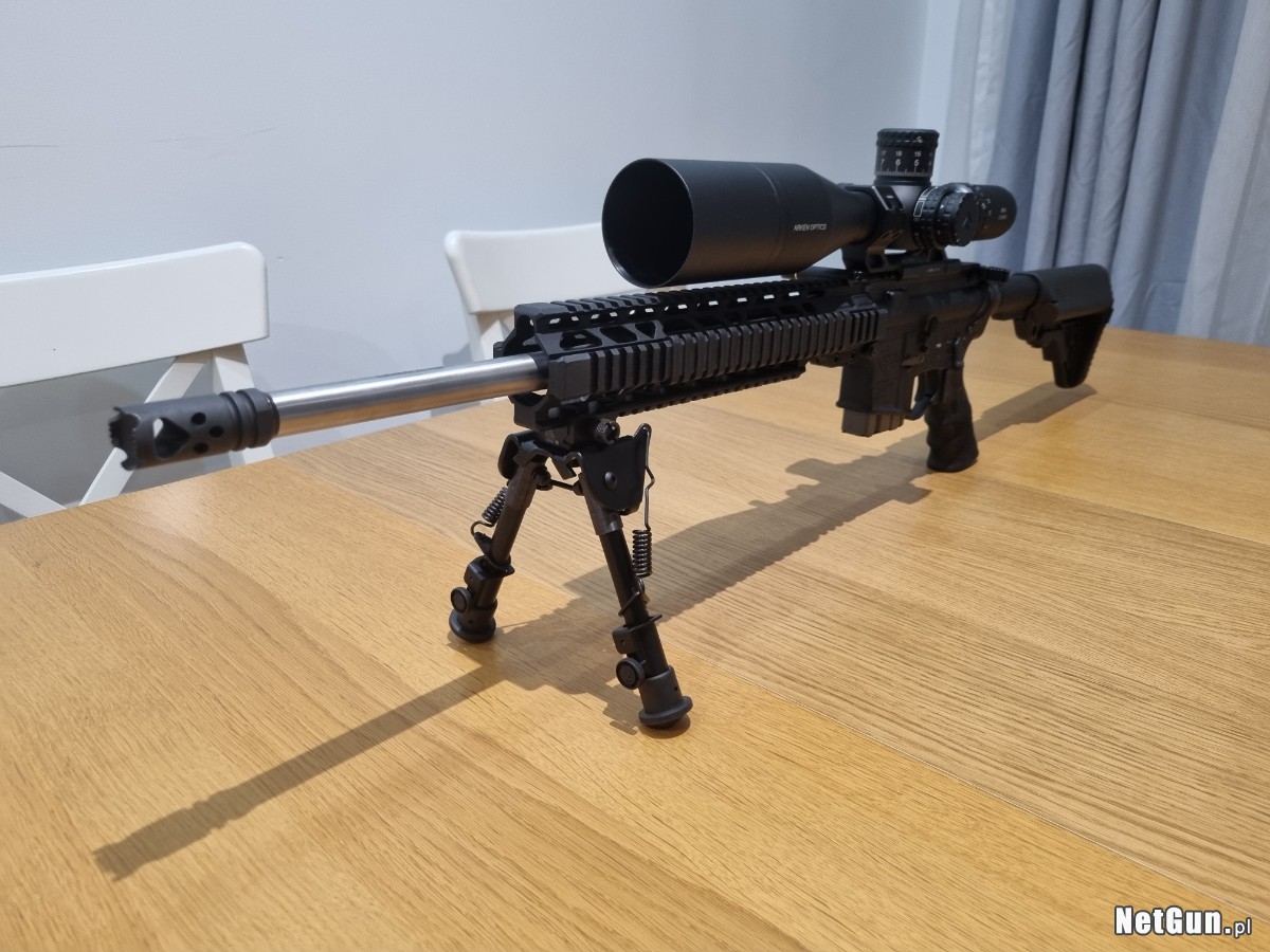 Spust: dwuoporowy Rock River Arms varmint, bardzo delikatny — idealnie nadający się do strzelania tarczowego. Skupienie na tarczy na 300m z odpowiednią amunicją jest aż coś podejrzanie za dobre :) <0.6MOA.
