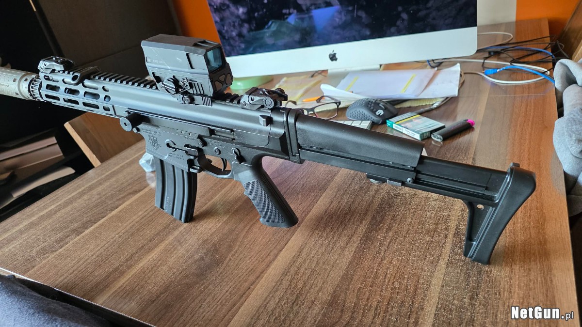Karabinek ma wstrzelone nie więcej niż 300 kulek i tylko na lufie 5,56. Lufą 300 BLK nowa