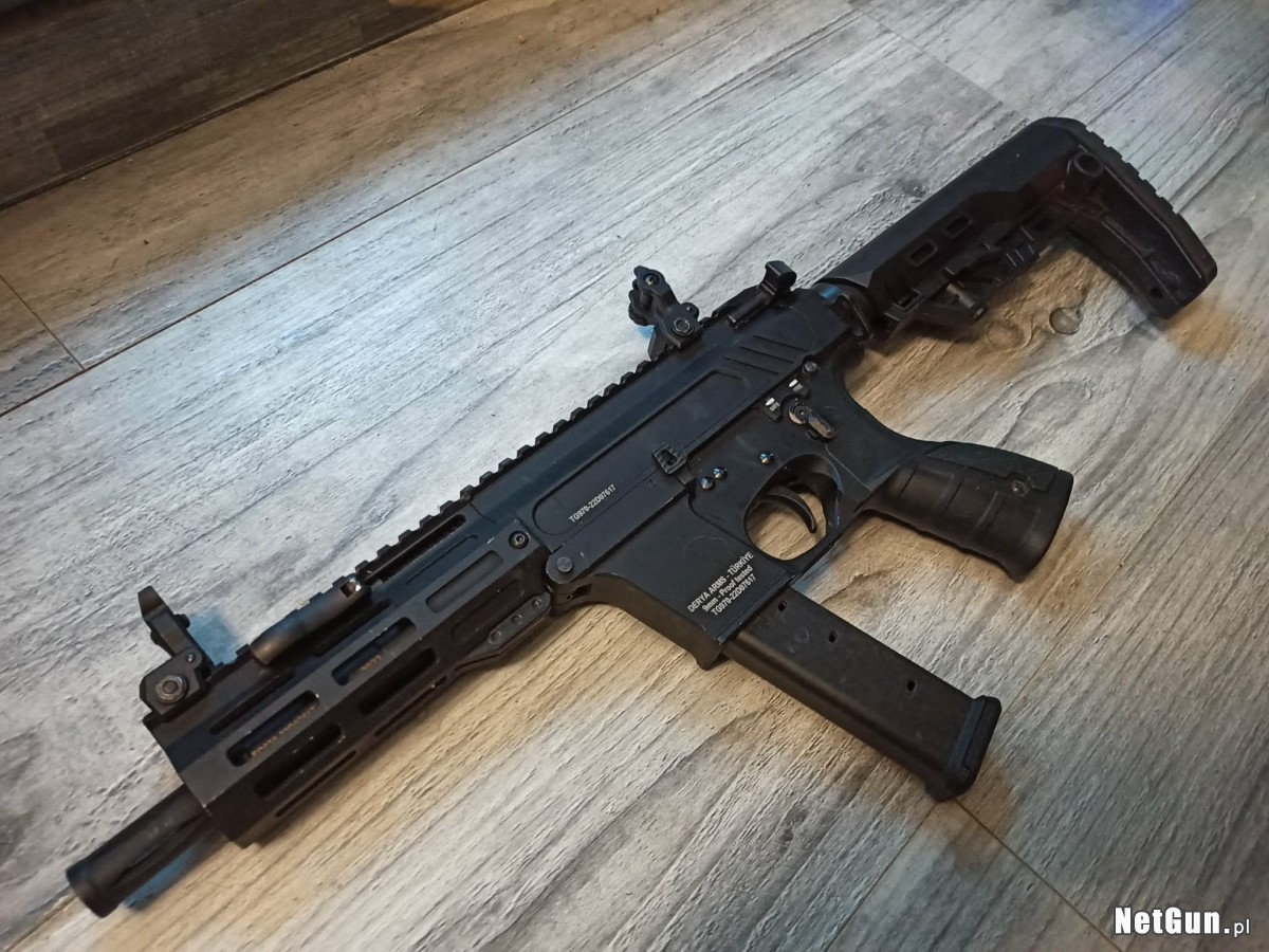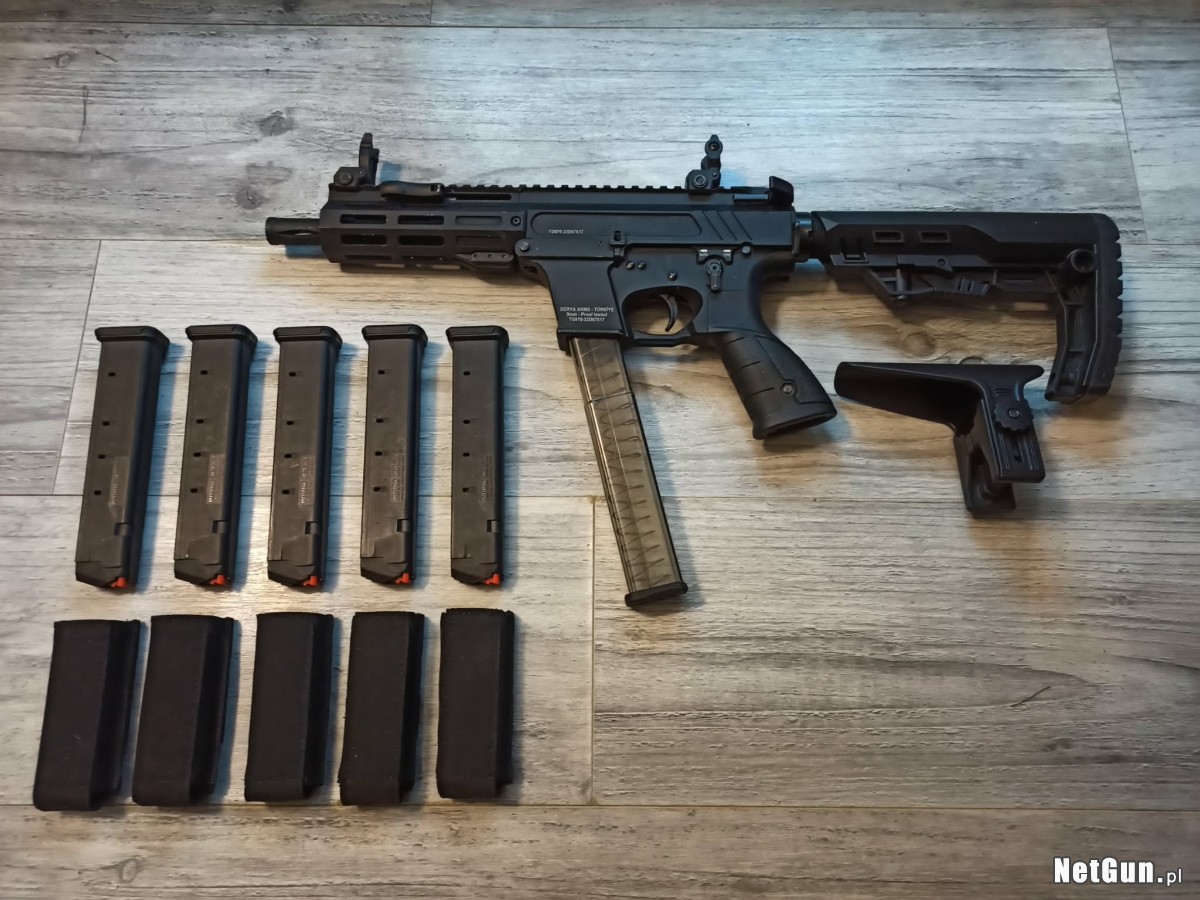 Z zalet zdecydowanie należy zaznaczyć selektor po obu stronach, dźwignia i kolba jak w AR, Dodatkowa dźwignia z przodu (w łożu po lewej), wygodny chwyt pistoletowy, system mlok na łożu, duży guzior do zrzutu maga, uszy do montażu zawieszenia przy bufferze. oraz magi w standardzie glocka.