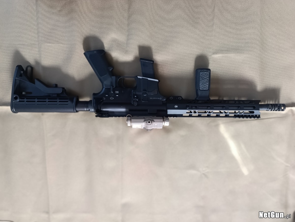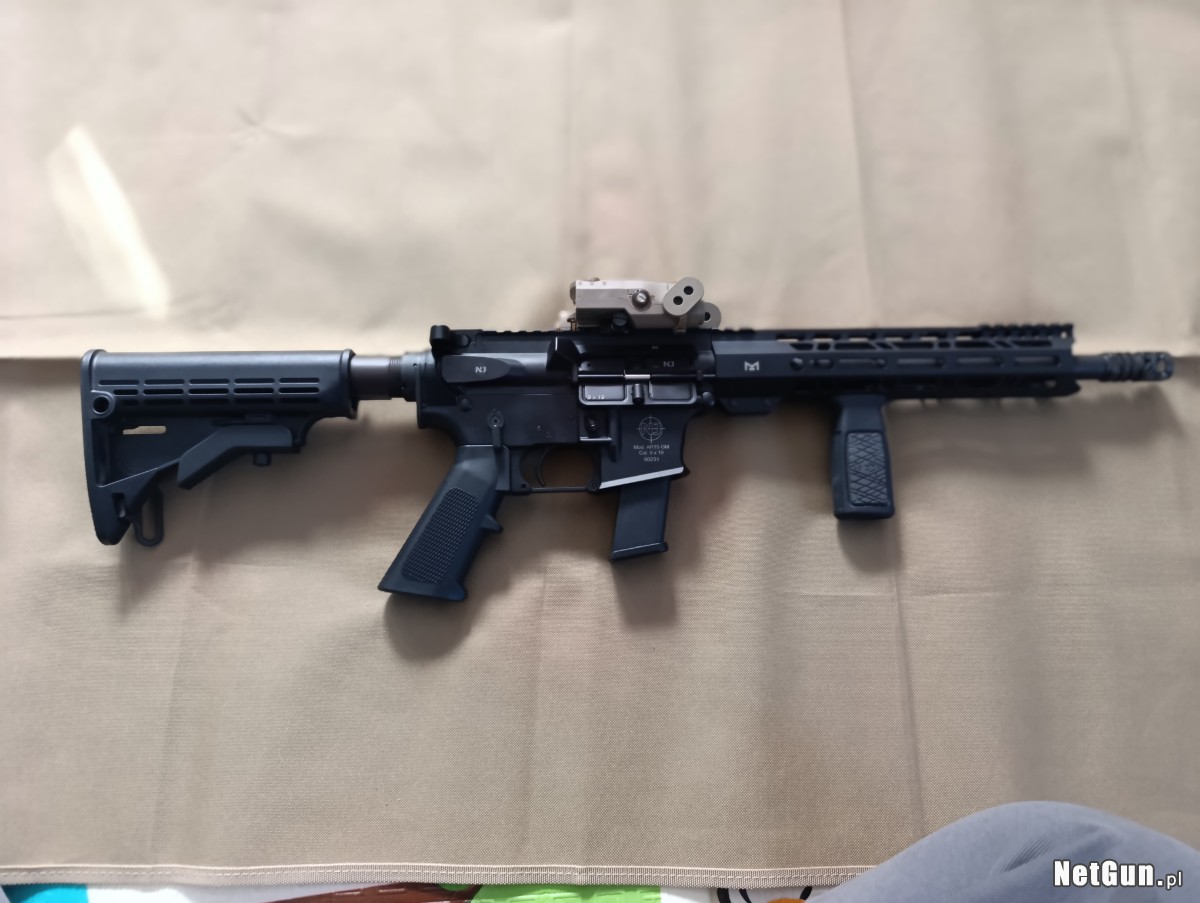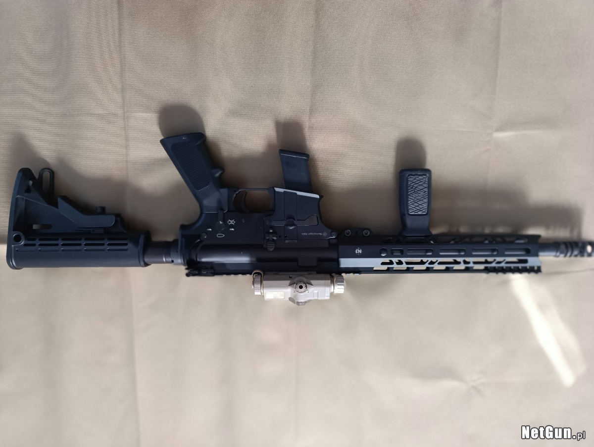 Sprzedam karabin kal. 9 mm na platformie AR 15. , W komplecie 3 magazynki, długość lufy 10,5 cala, lufa kuta na zimno. Łoże M-Loc ułatwiające montaż oświetlenia. Stan idealny. Używany sporadycznie. Nalot to kilkaset szt.amo. Cena do rozsądnej negocjacji.