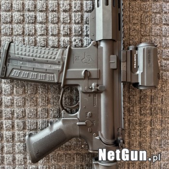 Na sprzedaż karabinek SBR AR-15 z systemem tłokowym PWS MK111 PRO 11,85” w kal. .223 / 5,56x45. Stan bardzo dobry, przebieg ok. 600 strzałów, jeden z kilku jakie posiadam. Bardzo dobrze współpracuje z tłumikiem. Wyposażony jest w regulowany blok gazowy oraz system tłokowy, co przekłada się na niezaw...