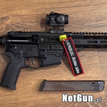 Sprzedam swój karabinek PCC Faxon Bantam z fabrycznym magazynkiem. Lufa długości 16 cali, kaliber 9x19mm. Przebieg: niecałe 600szt. (2x zawody) Założona kolba MFT Battlelink Extreme Duty Minimalist, chwyt Magpul MOE-K2+, spust CMC, obustronna rączka przeładowania SVRN Meva, obustronny bezpiecznik, k...