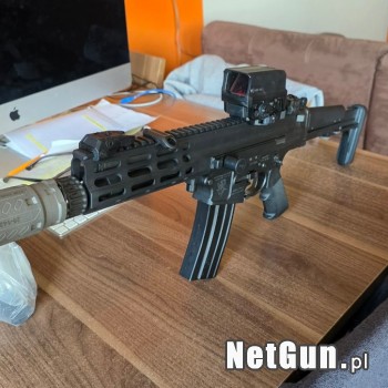 Sprzedam jak w tytule. Jak nowy, kupiony w grudniu 2025, przelot 300 sztuk. Wymieniony spust na sportowy CMC Triggers - Spust drop-in do AR15/AR10 Small Pin Competition - Jednostopniowy - Płaski język - 3.5 lb. Kolba + chwyty Magpul, gniazda QD do zawieszenia. Kolimator Vortex Crossfire, przyrządy m...