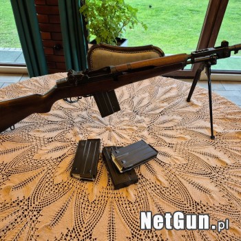 Beretta BM-59 W zestawie z karabinem znajduje się wszystko co widoczne na zdjęciach. Kaliber: 7,62 mm (nabój 7,62 x 51 mm, .308 Winchester) Długość lufy: 490 mm Masa: 4,6 kg Tryb działania: samopowtarzalny (semi-auto) Oferowany egzemplarz to ciekawa, wczesna wersja karabinu wytworzona jeszcz...