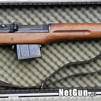 Karabin Ljungman Ag m/42, kal. 6,5x55. Broń w stanie bardzo dobrym i w pełni zgodna numerycznie. Jak widać na broni znajduje się medalion określający stan broni. Broń jest w komplecie z pasem. Karabin przyjechał do nas z Niemiec, więc został wykastrowany: szczerbina ograniczona do 300m, a magazynek...