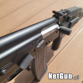 AK-47 WBP Jack Tactical 5,56x45mm / .223REM Przelot max 200 strzałów, głównie do licencji. Seria, jedyne zmiany to nakładka na dźwignie przeladowania, skrócona kolba (oryginalna w zestawie) oraz osłony szyny Picatinny W zestawie również dodatkowy magazynek 20 nabojowy Odbiór osobisty Warsza...
