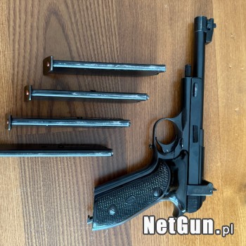 Legendarny amerykański pistolet tarczowy, produkowany od lat 50 – tych ubiegłego wieku, aż po dziś dzień, przy sugerowanej obecnie przez producenta cenie detalicznej w USA blisko 1.700 $. Niezwykle precyzyjna w całości stalowa konstrukcja. Broń wyposażona w nastawny bezpiecznik, bezpiecznik magazynk...