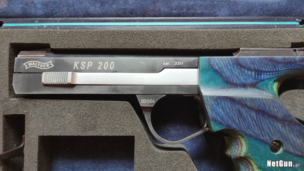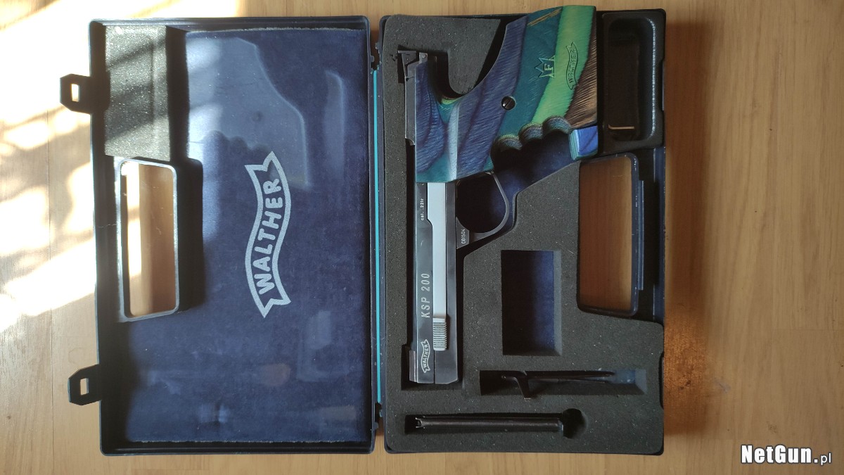 Pistolet Walther KSP 200, stan bardzo dobry, wyczynowy pistolet sportowy, bardzo celny. Profilowana rękojeść z półką. Ukompletowanie widoczne na zdjęciach.