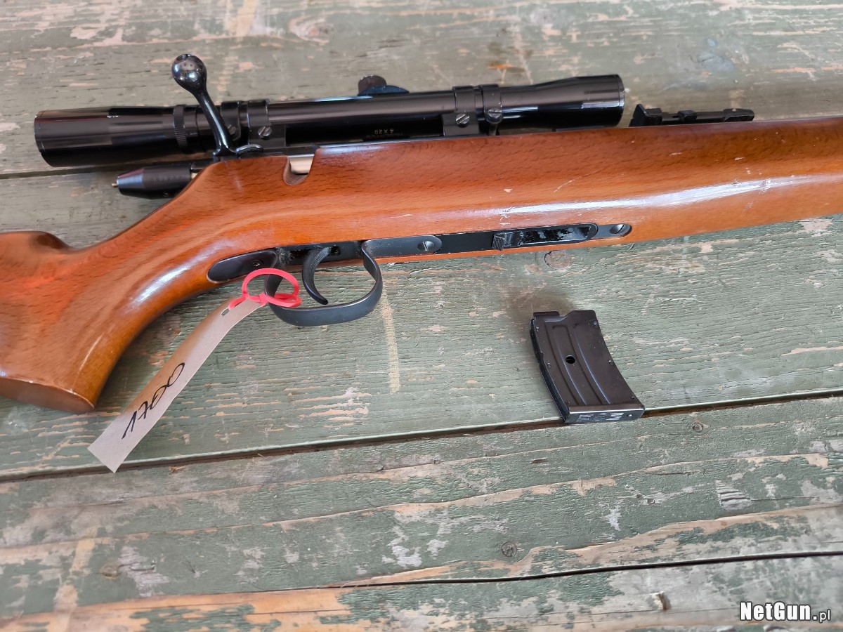 Karabinek powtarzalny Krico 260EA w kal. 22lr z 1971 roku. Bardzo ładnie zachowany repetier z magazynkiem marki Krico ze Stuttgartu. Przyrządy mechaniczne oraz optyka. Stan lufy - czysta z wyraźnym gwintem.