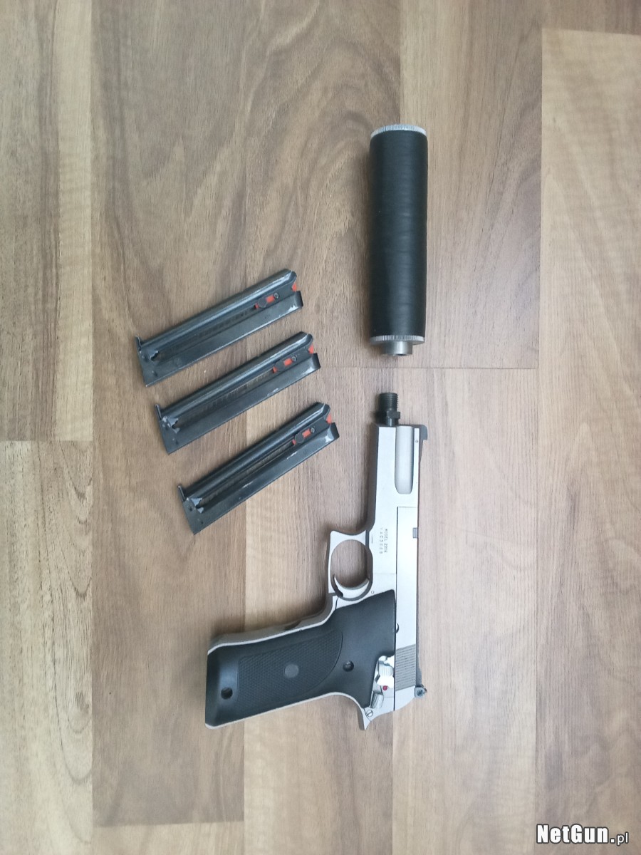 Pistolet sportowy s&w 2206 ctg 22lr .Pistolet ze stali nierdzewnej , lufa w bdb stanie , solidna bron bdb wykonana. Trzy magazynki , tlumik , adapter do tlumika , amunicja na start.