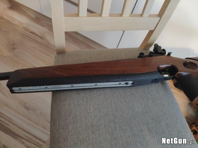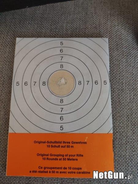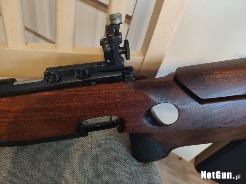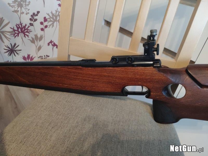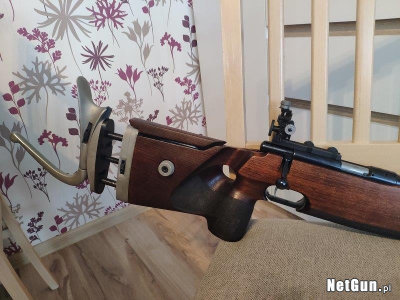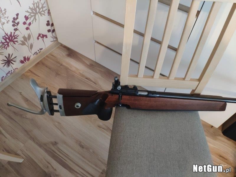 Karabinek w stanie jak z fabryki. Lufa lustro, gwint ostry, korona lufy w stanie idealnym. Celność karabinka potwierdzona oryginalną książeczką gwarancyjną (z numerami tego karabinka) posiadającą załączoną tarczę fabryczną z 10-cioma przestrzelinami oddanymi na dystansie 50m. Jak widać 10 przestrzelin tworzy jedną dziurę mieszczącą się w wewnętrznej dziesiątce. W pełni regulowana kolba zarówno na długość jak i wysokość baki. Ostroga regulowana na długość mechanizmem osadzonym w kolbie, ponadto regulacja góra-dół jak i pod kątem. Hak ostrogi regulowany prawo-lewo. Jednym słowem regulacje jakie daje kolba są nieograniczone i są w stanie w sposób idealny dostosować karabinek do postury strzelca dając nieograniczone możliwości jak i poczucie spójności strzelca z karabinem. Pod kolbą szyna montażowa pod pas lub bipod. Części metalowe jak i kolba nie posiadają żadnych uszkodzeń, zadrapań, pęknięć czy zgięć. Wszystkie elementy (układ spustowy, zamek, diopter, tunel lufy) są w pełni działające. Karabinek do nabycia w Warszawie lub po umówieniu w okolicach Poznania.
