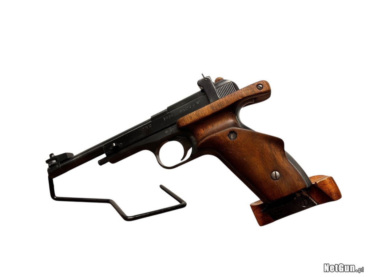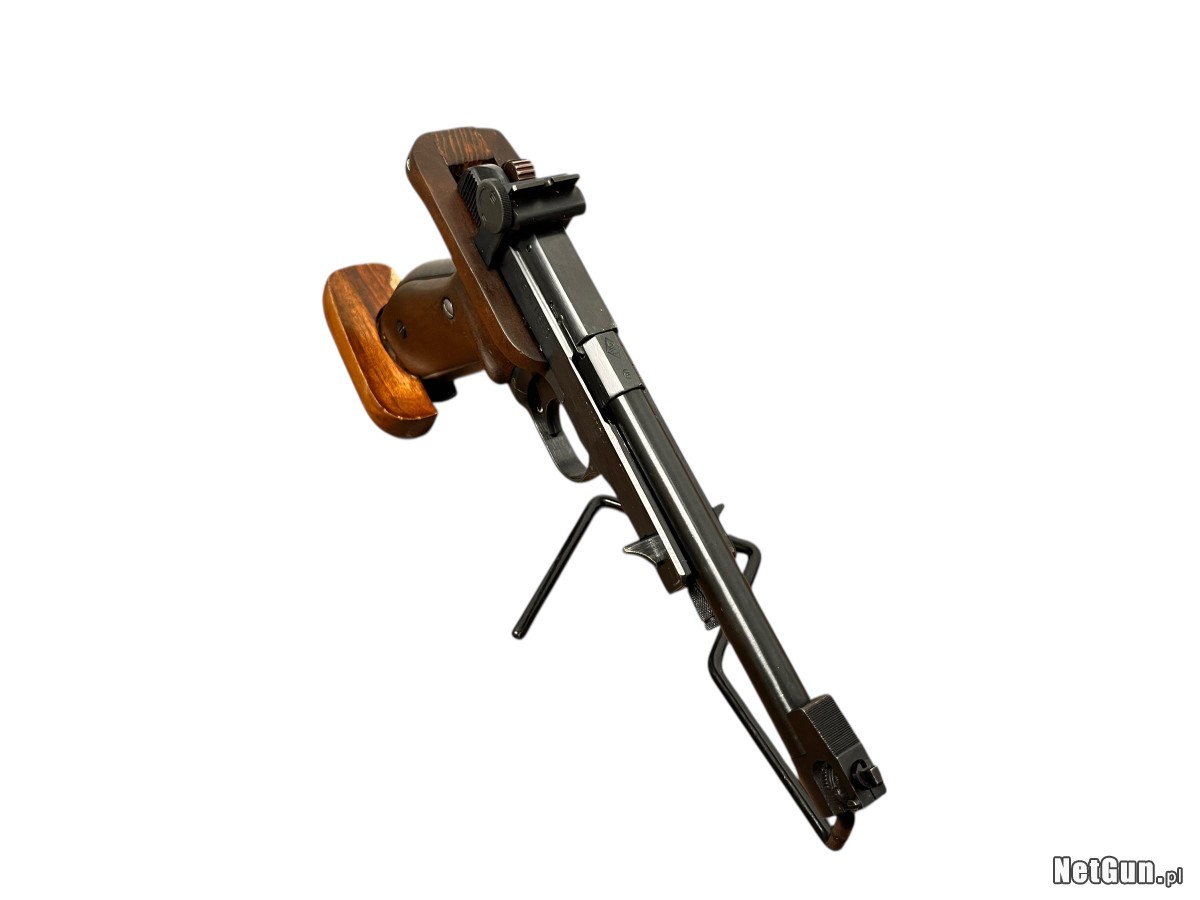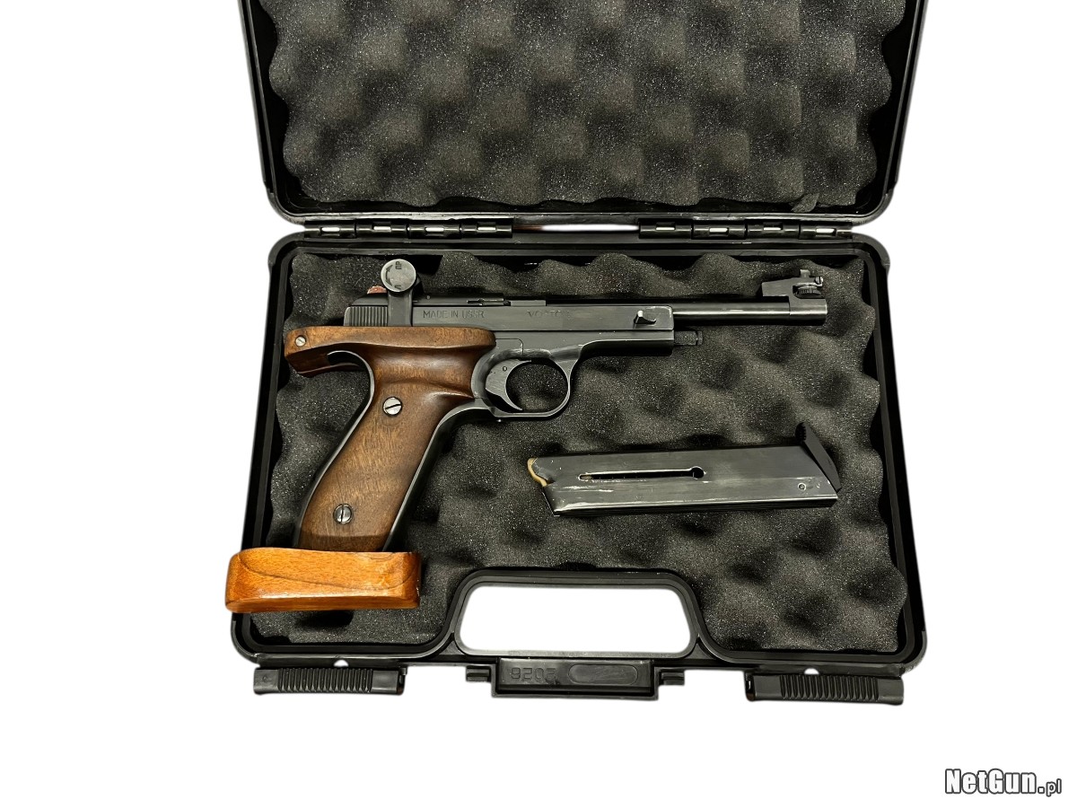 Legenda strzelnic sportowych – pistolet Margolin w kalibrze .22lr. Zaprojektowany przez niewidomego konstruktora Michaiła Margolina, słynie z fenomenalnej, wrodzonej celności. Jego unikalna konstrukcja z nieruchomą lufą i wysoko osadzonymi przyrządami celowniczymi gwarantuje doskonałą powtarzalność strzałów. Przez dekady był to podstawowy pistolet do nauki strzelania precyzyjnego w klubach sportowych. Niezawodny, ergonomiczny i tani w eksploatacji. Egzemplarz w stanie dobrym z plusem, w komplecie pudełko zastępcze.