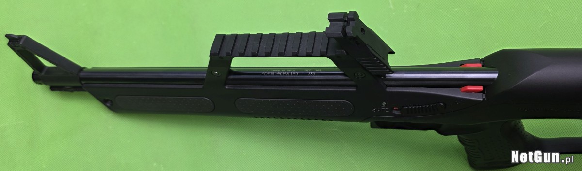 Nowoczesny niemiecki karabinek, skonstruowany w układzie bezkolbowym. Karabinek można skonfigurować zarówno dla strzelca leworęcznego, jak i praworęcznego. Broń została bowiem zaprojektowana tak, aby okno wyrzutowe i rączkę przeładowania można było przenieść na drugą stronę w zależności od preferencji strzelca. Zapasowy magazynek mieści się w specjalnym gnieździe kolby (której nie ma ;). Przestawna, wysuwana szczerbina, oszynowanie Weaver. Oferowany egzemplarz został wyprodukowany w 2006 r. i znajduje się w doskonałym stanie – jest niemalże jak nowy – w 100% oryginalny oraz zgodny numerycznie. Lufa oczywiście nieskazitelna. W komplecie dwa 10 nabojowe magazynki.