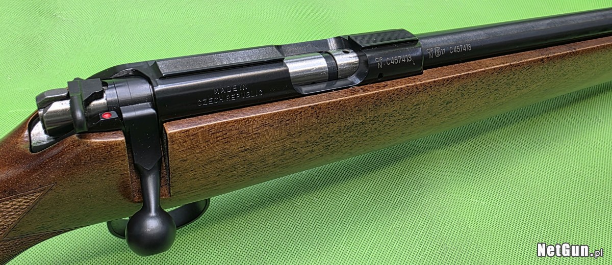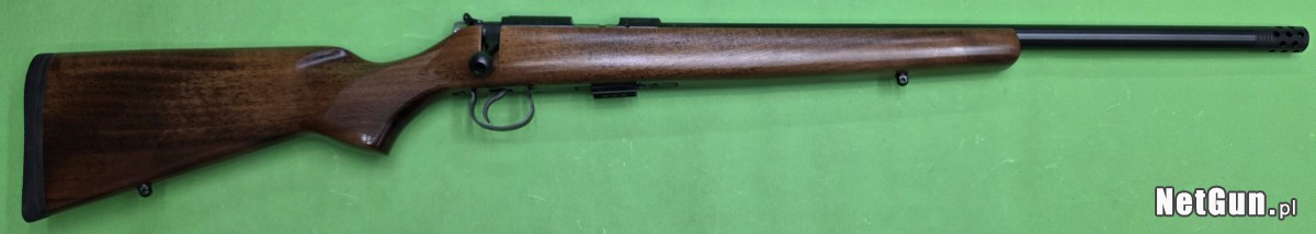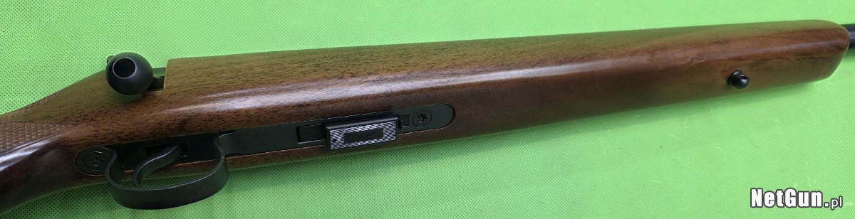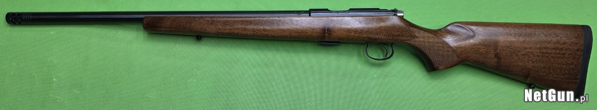 Powtarzalny karabinek z pięcionabojowym magazynkiem, w pięknej orzechowej osadzie z ciężką lufą długości 20″ i gwintem zewnętrznym oraz kompensatorem. Karabinek wyprodukowany w 2017 r. w doskonałym stanie – jak nowy. Wszystko w 100 % oryginalne i zgodne numerycznie, przewód lufy w stanie fabrycznym. W zestawie jeden magazynek i wspomniany kompensator wylotowy. Broń fabrycznie wyposażona w szynę montażową 11 mm na komorze zamkowej. Karabinki te jako nowe, były oferowane w sprzedaży bez przyrządów celowniczych. Do karabinka jednak, wedle życzenia klienta, możemy za dopłatą dobrać celownik optyczny.