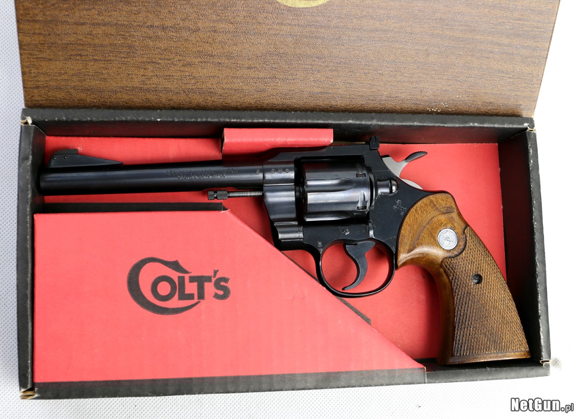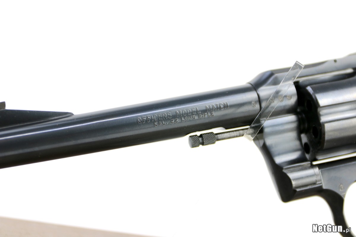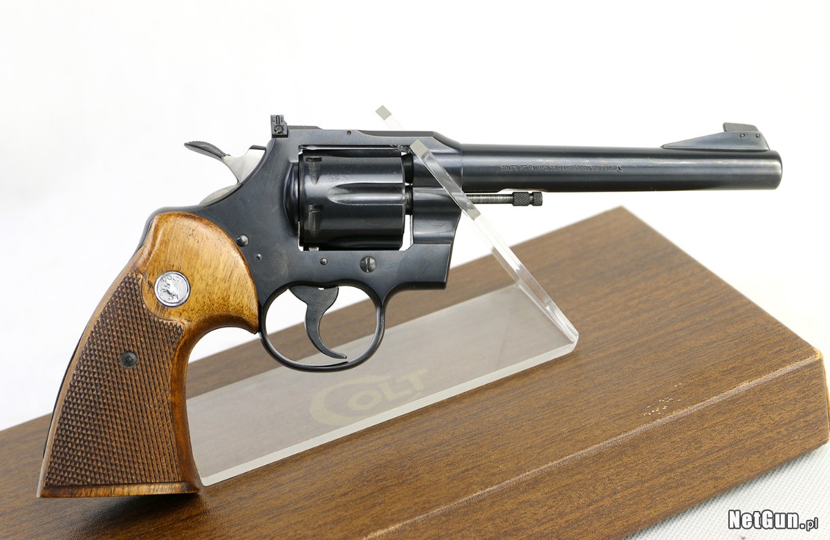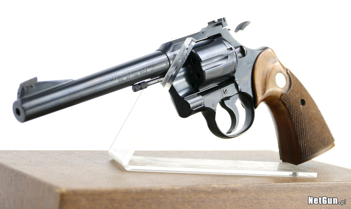 Rewolwer sportowy Colt OMM (Officer's Model Match), rocznik 1968, kaliber 22 LR. Kupiony jako nowy, w oryginalnym pudełku! Świetny rewolwer sportowy, bardzo celny "dziurkacz". Ciężka lufa długości 6", precyzyjnie regulowany celownik Accro. Ma bardzo solidną konstrukcję, waży około 1,2 kg. Oszczędnie używany, na zmianę z drugim rewolwerem (S&W Model 17). Zadbany, czyszczony po każdym strzelaniu (czyli co 25 strzałów). Cena do rozsądnej negocjacji.