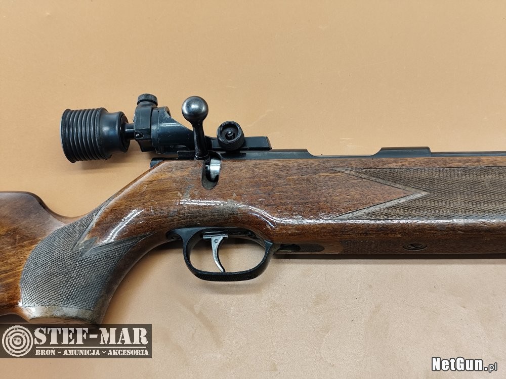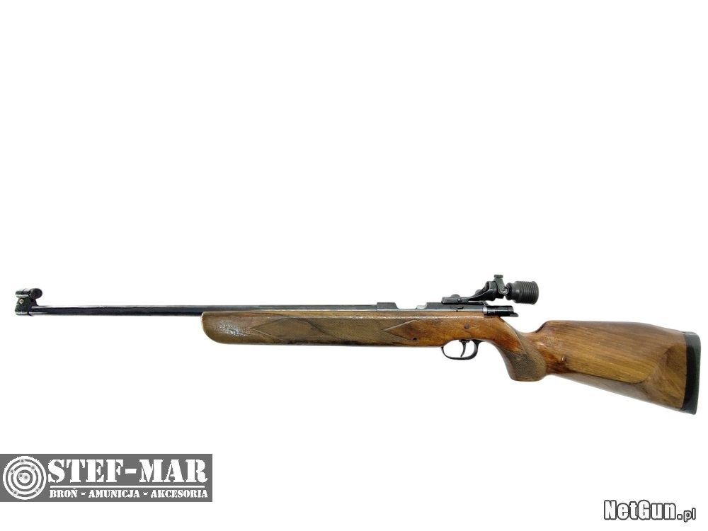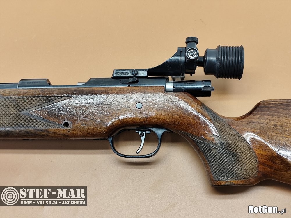 Karabinek renomowanego producenta,wyposażony w regulowany spust oraz diopter.Prezentowany egzeplarz posiada ślady użytkowe i magazynowe.