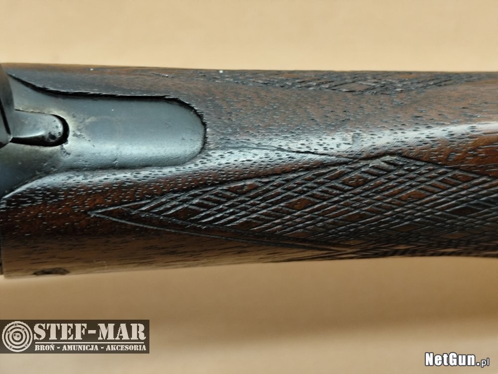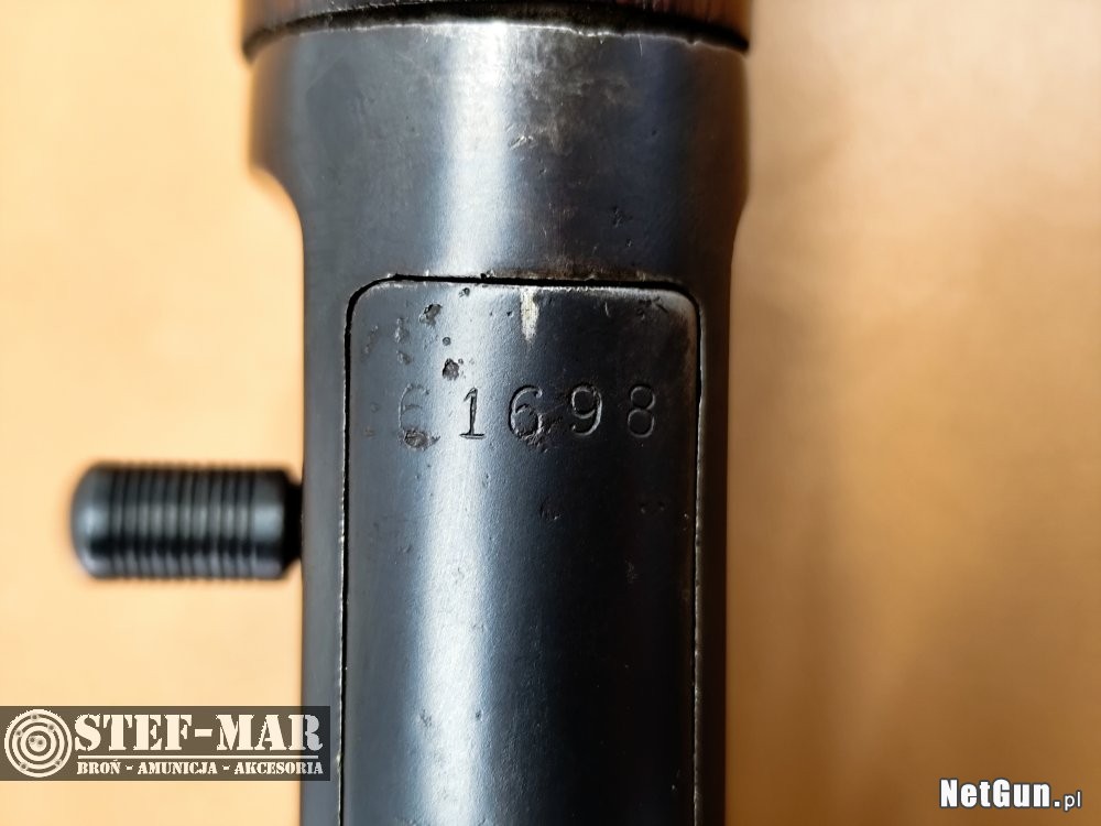 Nietypowa broń z magazynkiem rurowym w kolbie,mieszczącym 10 nabojów.Całości dopełnia dobrze wyprofilowane i ładnie karbowane łoże i kolba.Wyposażony w mechaniczne przyrządy celownicze..Nadpęknięte drewno kolby za komorą zamka.