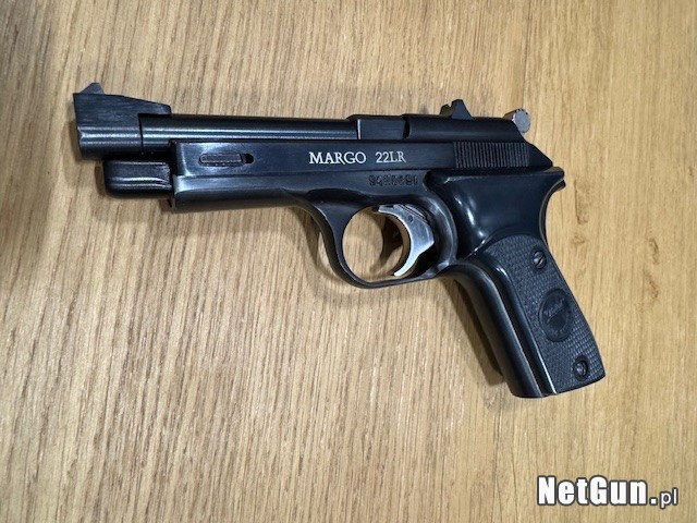 Pistolet bocznego zapłonu MARGO kaliber 22 lr produkcji rosyjskiej z 1994 roku. Pistolet używany w stanie bardzo dobrym . W zestawie :karta broni, oryginalne opakowanie , wycior, olejarka, wkrętak , zapasowa iglica i pazur wyciągu .