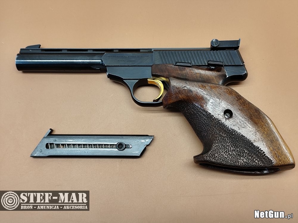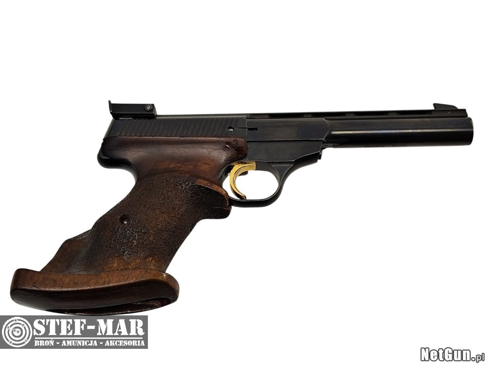 Półautomatyczny pistolet wyczynowy,znany również jako Browning Medalist,chwalony za niezawodność,celność i solidne wykonanie.Prezentowana broń,w stanie dobrym,posiada magazynek na 10szt. Naboi,i rękojeść dla strzelca praworęcznego o mniejszych dłoniach.