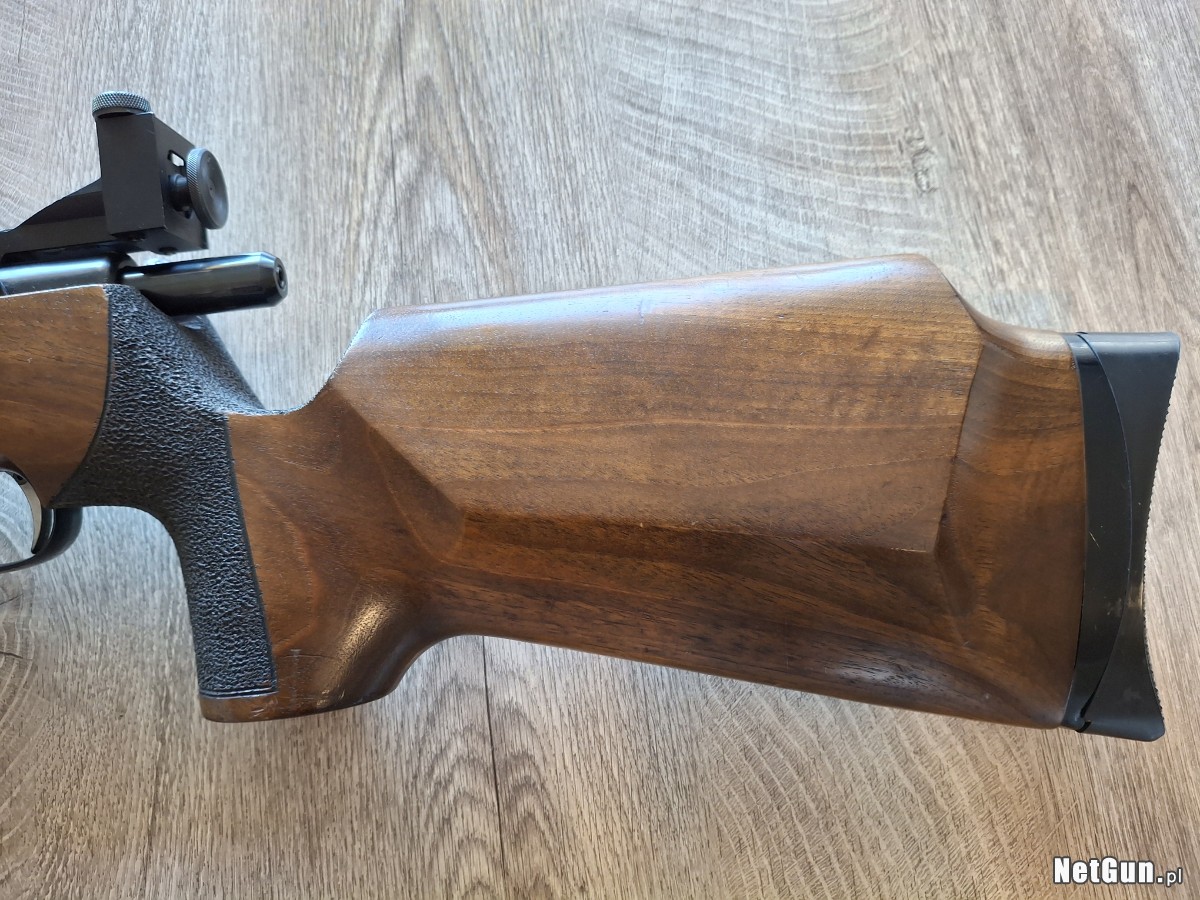 Karabin posiada regulowaną góra - dół kolbę tarczową.
